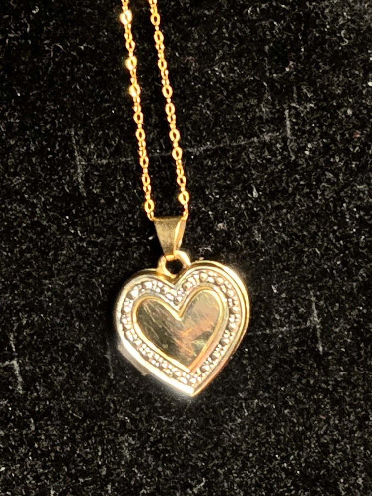This locket is solid 14k not gold filled or plated. The chain is super dainty and it is solid 10 k. please refer to pics for stamps, weight is .73 g.