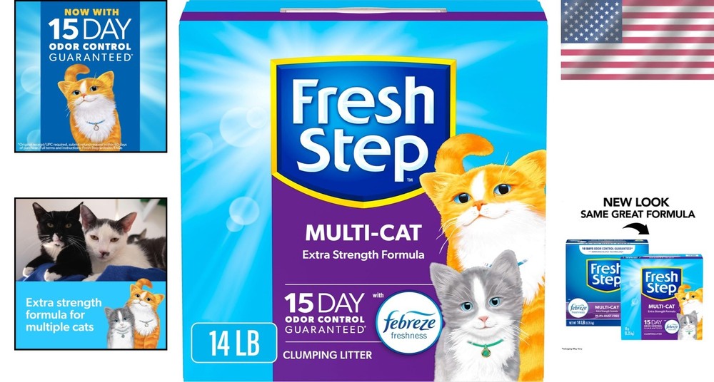 14 lb Multi-Cat Clumping Litter - Activated Charcoal for 15 Days Odor Control ‹ › ‹ › ‹ › ‹ › ‹ › ‹ › ‹ › ‹ › ‹ › ‹ › ‹ › ‹ › ‹ › 14 lb Multi-Cat Clumping Litter Activate a fresh environment for your beloved felines with our multi-cat clumping litter designed for homes with multiple cats. This superior litter offers an unparalleled balance of odor control and ease of use. Features: Low Dust Formula: Keeps your floors and other surfaces cleaner, giving you peace of mind. Rapid Liquid Absorption: Quickly absorbs liquid, providing a dry and comfortable litter box for your cats. ClumpLock Technology: Forms tight clumps that lock in liquid and odor on contact for effortless scooping. Odor Control: Features Ammonia Block technology that ensures up to 15 days of odor control, keeping your home fresh. Freshness with Febreze: Infused with Febreze to leave behind a delightful clean scent that welcomes every kitty visit. Benefits: Designed specifically for multi-cat households, ensuring every cat's comfort and cleanliness. Eliminates unpleasant litter box odors, making your home an inviting space. Easy cleanup process with tight clumping to prevent mess and crumbles. Low dust formula promotes healthier indoor air quality for both you and your cats. Discover Your Purr-fect Match: Delve into our full range of litter formulas to find the ideal match for your feline family - because every cat deserves the ultimate comfort when it comes to their litter box. Pamper your cats and enhance your home environment with our unbeatable 14 lb Multi-Cat Clumping Litter. Purchase today for a fresher, cleaner, and more enjoyable litter experience for both you and your feline companions! Shipping Free & Fast Shipping - We offer free shipping to most of the USA with a normal delivery time of 3-7 days. However, due to the current situation, additional delivery time (up to 3 weeks) may be required for some items. Alternative Carriers - We may use alternative carriers (e.g. USPS, FedEx, UPS, etc.) to ensure your package arrives safely and on time. Due to the use of multiple carriers, we are unable to provide a tracking number automatically. Handling Time - Orders are processed and shipped within 1-2 business days of receiving cleared payment. Shipping Restrictions - Shipping to Alaska, Hawaii, Puerto Rico, Guam, and other US territories may incur shipping charges or delivery restrictions. Please contact us before ordering, or your order can be refunded/cancelled. State Restrictions - There may be restrictions based on your state of purchase. For example, certain items may not be shipped to California due to state regulations. Contact for Tracking Updates - If you require tracking updates or have any concerns about the delivery of your order, please feel free to contact us, and we will be happy to assist you. Return 30-Day Hassle-Free Returns - We want you to be completely satisfied with your purchase. If you are not, you can return the item within 30 days of receiving it for a full refund or exchange. Easy Return Process - To start a return, simply contact us and we will provide you with a prepaid return shipping label and detailed instructions. Restocking Fee - There are no restocking fees for returns. However, the buyer is responsible for return shipping costs if the return is not due to a seller's error. Refund Processing Time - Refunds will be processed within 5 business days of receiving the returned item in its condition. Payment We accept all major credit cards, PayPal, and Apple Pay for your convenience. Your payment information is secure and encrypted to ensure a safe and seamless transaction. Please complete your payment within 3 days of purchase to avoid any delays in shipping. Feedback Your feedback is extremely important to us. We strive to provide the best products and customer service possible. If you are satisfied with your purchase, please take a moment to leave us a positive review. If you have any concerns or issues with your order, please contact us before leaving negative feedback. We are committed to resolving any problems and ensuring your satisfaction. Contact Us If you have any questions or concerns, please feel free to out to our customer support team. You can contact us through the eBay messaging system. We are available Monday to Friday, 9:00 am to 5:00 pm EST, and we will do our best to respond to your inquiry within 24 hours. Buy it now and enjoy a pleasant shopping experience! Model: Cat Litter MPN: Cat_Litter Unit Quantity: 14 lb Type: Clumping Litter