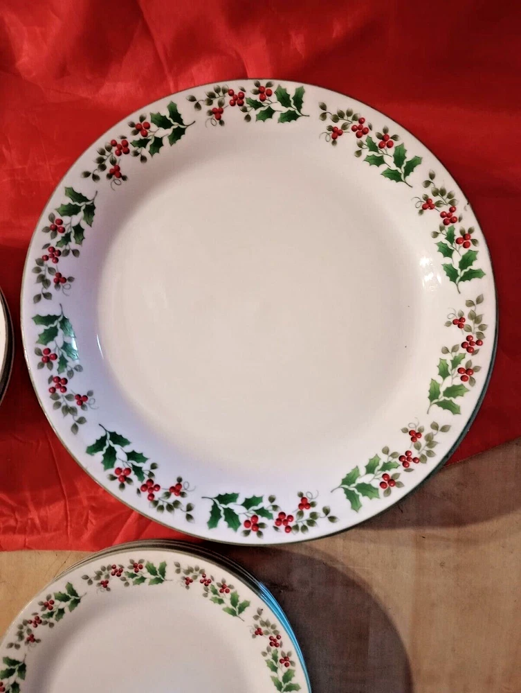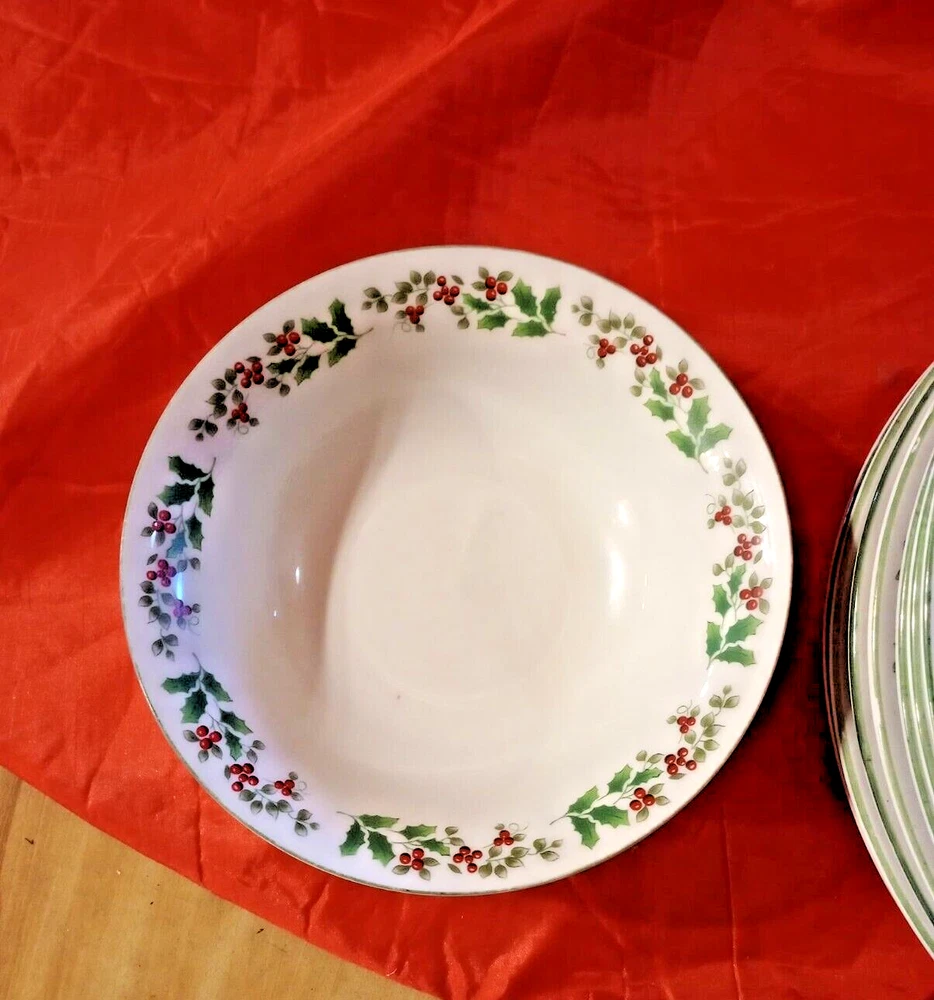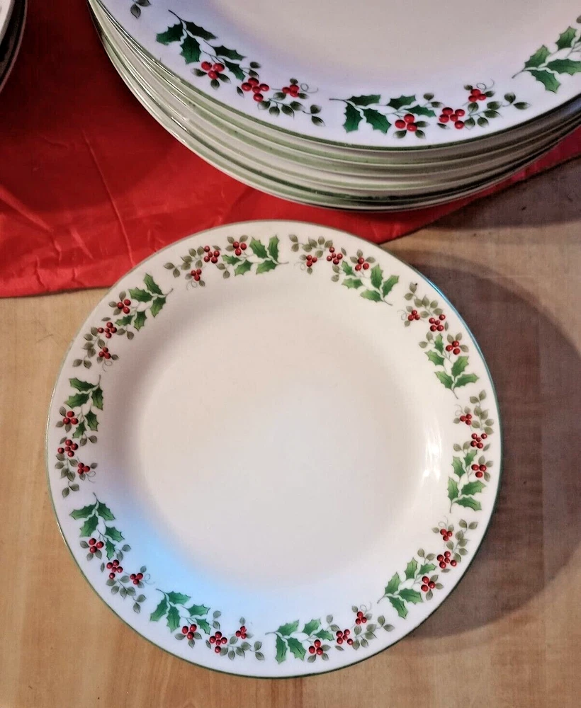 Elevate your holiday table setting with the Gibson Everyday Christmas Charm dinnerware set, featuring a delightful Holly & Berries theme. Each piece showcases a glossy finish, with a classic round shape that seamlessly blends with your festive decor. Crafted from high-quality ceramic, this 14-piece collection includes seven 9 1/2" dinner plates, five 7" salad plates, and two 6 1/4" bowls, all adorned with an inviting green trim that adds a touch of Christmas joy to every meal. Designed to be the centerpiece of your holiday gatherings, this set is a testament to timeless style and functionality. Despite its decorative appeal, the pieces are durable and perfectly suited for both everyday use and special occasions. The collection promises a uniform, elegant presentation for your Christmas celebrations. Please look at pictures as they are part of the description. Please contact us directly for any questions, concerns or issues with condition, shipper/carrier delays, etc. and we will work to resolve. Opening a case will only delay our ability to quickly resolve any issues you might have. We strive for 100% customer satisfaction and have an excellent track record. Purchase with confidence. For USA buyers outside the continental USA there may be an additional cost for shipping. Please contact us for the estimated shipping cost. For international buyers our estimated shipping cost is to EBAY's National Shipping Center on the American east coast. EBAY will provide you the additional cost to ship to your location. We sell "used" items in most cases, sometimes new. There are however some items manufactured in previous years that were never used. If such an item is in excellent condition and still has an original price tag, original packaging and in some cases the original box we will show it as a new item but describe it as "new old stock". We obtain our items through yard sales, storage sales, individuals, pickers that we use, auctions and various other means and we do consign items for sale on occasion. We do not know the history of the items we obtain as to how it was stored, who previously owned it, etc. Items are generally unique but we do buy multiples in some cases. We do research every item but are not experts on every item obtained. We do our best to describe each item accurately. NOTE: I describe and post photos of my items as best as possible and do not try to represent myself as an expert on anything that I sell. I am an honest seller and if I see a flaw, I will point it out and try to post a photo for your review and consideration. Used items are not perfect, not mint or near mint and can have scratches, marks, crazing, glaze flaws, trim wear, stains and general wear. Some items we sell have general wear consistent with age and other items do not show their age nearly as much. Please review our pictures as they are an important part of our condition description. If you receive an item that is damaged in some way let us know right away as shippers can be very rough on items shipped. Depending on the type of item we try to "double box" sensitive items to prevent damage. In many cases carefully wrapping the item in bubble wrap or other wrapping is enough protection. IF ANY SHIPPING DAMAGE OCCURS WHEN MULITIPLE ITEMS ARE SHIPPED TOGETHER, INCLUDING SETS, INSURANCE ONLY PAYS FOR THE DAMAGED ITEM ONLY.. NOT THE ENTIRE SET. YOU WILL ONLY BE REFUNDED FOR THE DAMAGED PIECE ONLY. I ship in recycled packaging when possible to reduce waste. If there is a problem, please contact me before leaving feedback. SHIPPING: I SHIP GLASS, CHINA AND OTHER FRAGILE ITEMS VIA FEDEX.