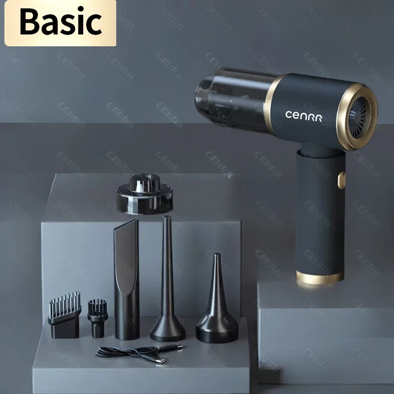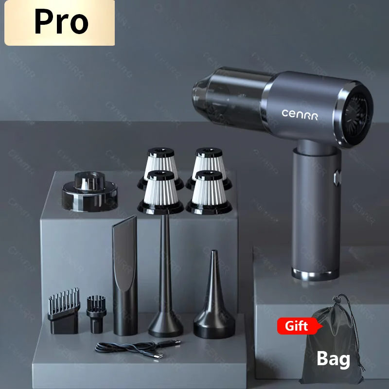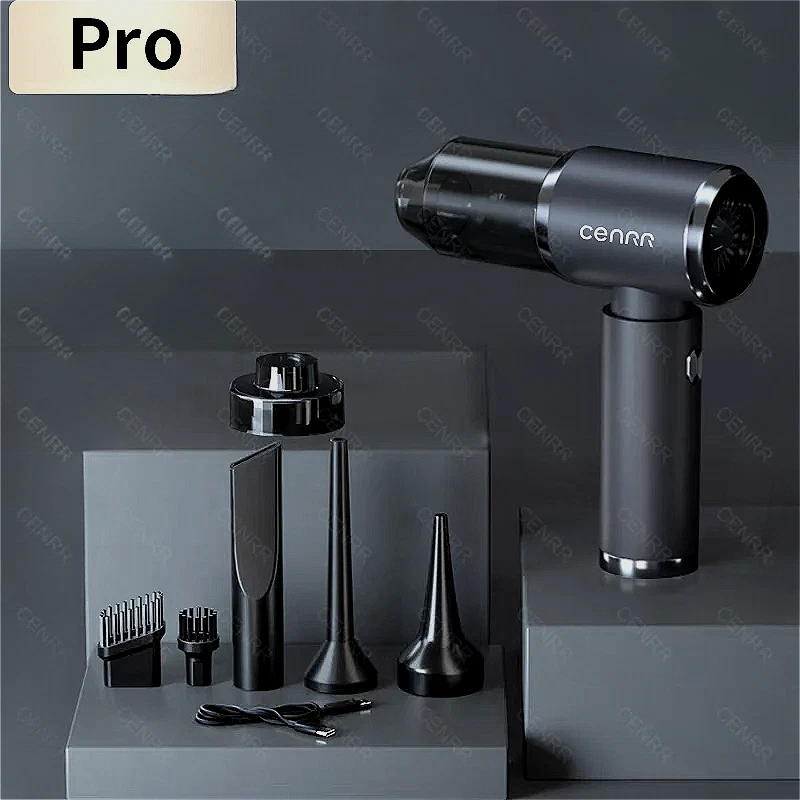 Introduction [Product Name]: Multifunctional Vehicle Vacuum Cleaner [Product functions]:mainly cleaning cars, vacuuming, blowing dust and so on [Package list]: vacuum cleaner X1 Accessories X 6 Charging line X 1 User manual X 1 [weight]:590g for Basic,610g for Pro Version Introduction 【Pro version】 [Product material]: ABS [Motor]: New upgraded Brushless motor [Color]: Elegant Silver [Vacuum degree]: 140000PA [Rated speed]: 35500rpm [Capacity of lithium battery]: 2 * 2000mAh [Charging mode]: Type-C charging line [Noise]: ≤ 32dB [Operating temperature]: - 20 ℃~+50 ℃ 【Basic version】 [Product material]: ABS [Motor]: Brushed motor [Color]: Glamour Black [Vacuum degree]: 50000PA [Rated speed]: 15500rpm [Capacity of lithium battery]: 2 * 2000mAh [Charging mode]: Type-C charging line [Noise]: ≤ 32dB [Operating temperature]: - 20 ℃~+50 ℃