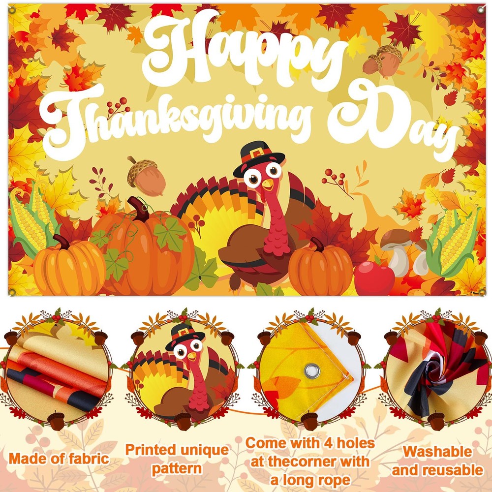 140PCS Thanksgiving Balloon Garland Arch Kit Thanksgiving Backdrop for Photography Orange Brown Fall Maple Leaves Balloons Turkey Photo Booth Props for Happy Thanksgiving Day Birthday Party Decoration Package include: You’ll get 1 happy Thanksgiving Day banner, 1 pine nut foil balloon, 1 fall leaf foil balloon, 2 orange and yellow balloon(18inch), 60pcs of 10inches balloons in 5 colors(orange, yellow, rose gold, metallic gold, coffee), 20pcs of 5inches balloon in 2 colors(orange, yellow), 5 gold confetti balloons, 50 artificial autumn leaves, enough adhesive dots, 1 roll of balloon strip, 1 roll of ribbon, ideal for creating a festive and eye-catching display. Premium material: Made of premium 100% polyester fabric, the happy Thanksgiving Day banner and fall leaves decoration boasts a smooth surface and exceptional durability. It is lightweight, washable, and foldable, allowing for easy storage and transportation. Fall Thanksgiving party balloons are made from durable latex and retain their shape throughout your party. The pine nut and autumn leaf balloon are made of foil material, durable and sturdy. Easy to DIY: Inflate your Fall Thanksgiving party balloons to different sizes and and tie them securely. Thread each balloon's knot through the balloon strip to create a beautiful fall party balloon garland arch. Attach the ribbon through the grommets in the four corners of the happy thanksgiving photography backdrop banner for easy hanging, making setup quick and simple. Use adhesive dots to place the artificial fall leaves wherever you like. Create memorable photos backdrop: The fall Thanksgiving balloon arch kit and banner party decoration serves as an ideal backdrop for photography, creating stunning and memorable photos. Guests will love capturing moments against the colorful surface, making it an ideal addition to any photo booth or selfie station. Wide application: This fall Thanksgiving balloons arch kit party decorations are incredibly versatile. Whether it's for a Thanksgiving Day, fall theme birthday party decorations, baby shower, autumn holiday parties or other festival parties. They also can be used as a photo booth backdrop, doorway accent, or even as part of a stage design, capturing the essence of fall and Thanksgiving, providing a warm and inviting atmosphere for your event. Imported. Package include: You’ll get 1 happy Thanksgiving Day banner, 1 pine nut foil balloon, 1 fall leaf foil balloon, 2 orange and yellow balloon(18inch), 60pcs of 10inches balloons in 5 colors(orange, yellow, rose gold, metallic gold, coffee), 20pcs of 5inches balloon in 2 colors(orange, yellow), 5 gold confetti balloons, 50 artificial autumn leaves, enough adhesive dots, 1 roll of balloon strip, 1 roll of ribbon, ideal for creating a festive and eye-catching display. Premium material: Made of premium 100% polyester fabric, the happy Thanksgiving Day banner and fall leaves decoration boasts a smooth surface and exceptional durability. It is lightweight, washable, and foldable, allowing for easy storage and transportation. Fall Thanksgiving party balloons are made from durable latex and retain their shape throughout your party. The pine nut and autumn leaf balloon are made of foil material, durable and sturdy. Easy to DIY: Inflate your Fall Thanksgiving party balloons to different sizes and and tie them securely. Thread each balloon's knot through the balloon strip to create a beautiful fall party balloon garland arch. Attach the ribbon through the grommets in the four corners of the happy thanksgiving photography backdrop banner for easy hanging, making setup quick and simple. Use adhesive dots to place the artificial fall leaves wherever you like. Create memorable photos backdrop: The fall Thanksgiving balloon arch kit and banner party decoration serves as an ideal backdrop for photography, creating stunning and memorable photos. Guests will love capturing moments against the colorful surface, making it an ideal addition to any photo booth or selfie station. Wide application: This fall Thanksgiving balloons arch kit party decorations are incredibly versatile. Whether it's for a Thanksgiving Day, fall theme birthday party decorations, baby shower, autumn holiday parties or other festival parties. They also can be used as a photo booth backdrop, doorway accent, or even as part of a stage design, capturing the essence of fall and Thanksgiving, providing a warm and inviting atmosphere for your event. Imported. Shipping from the USA All of our products are shipped from the USA, ensuring quick delivery to your destination. Payment We offer the following payment methods: PayPal, credit card, bank transfer, and eBay's secure payment system. Free Shipping & Free Returns Shipping within the USA is FREE. Additionally, any return is absolutely free for you. Risk-Free Purchase You have the option to return an item within 30 days without any justification. We cover the return shipping costs! Fast Shipping We ship immediately upon receipt of payment. Generally, the package is delivered within 2-3 days in the USA. If it takes longer, we will contact you. Quality and Costs Made in Europe, USA, China No customs fees or additional charges Total satisfaction guarantee Invoice with declared VAT available upon request in .pdf format Feedback Your feedback is very important to us. After you pay for your purchase, you will automatically receive positive feedback from us.