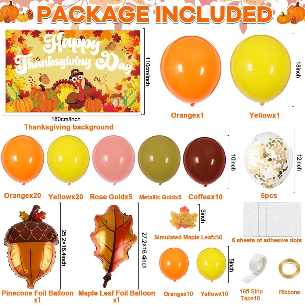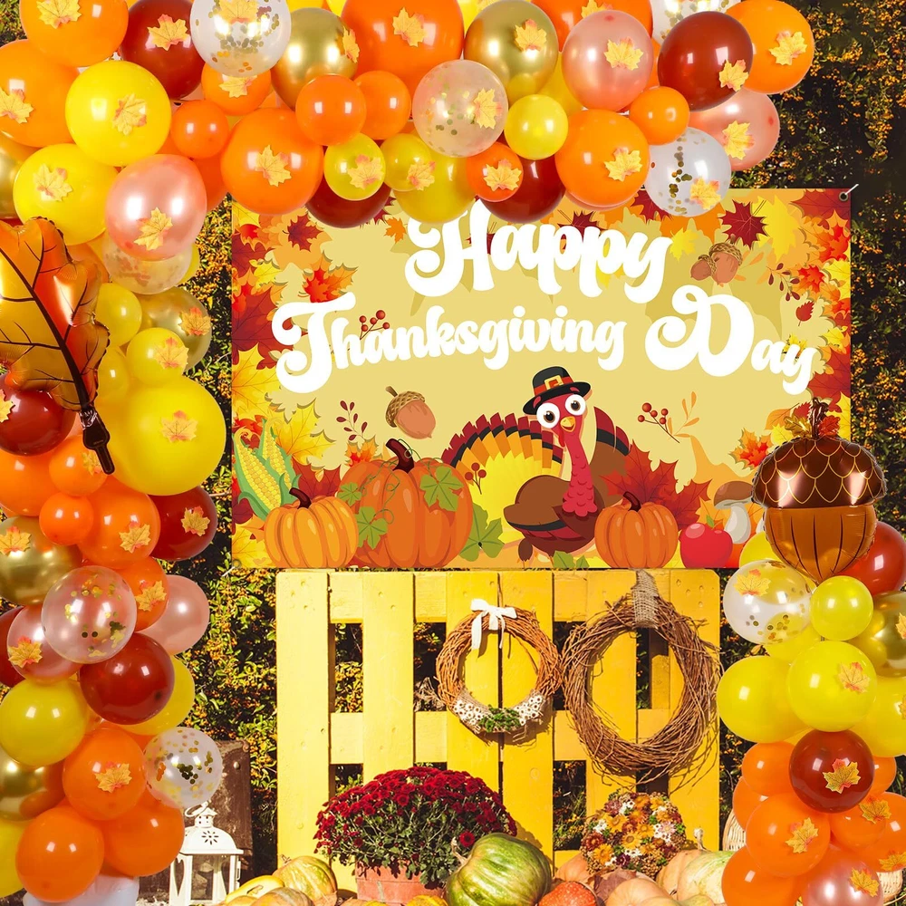 140PCS Thanksgiving Balloon Garland Kit for Party Decor and Photo Backdrops