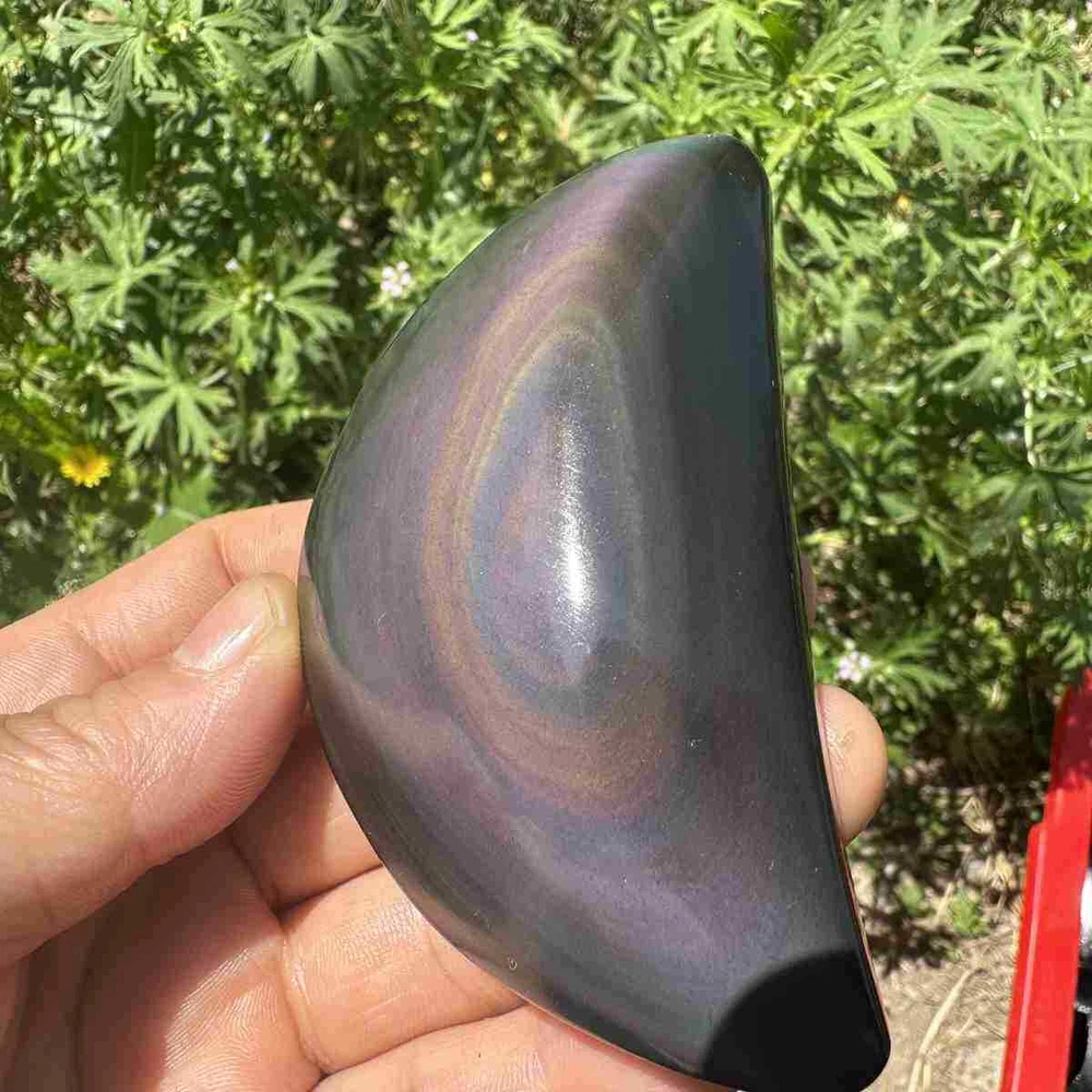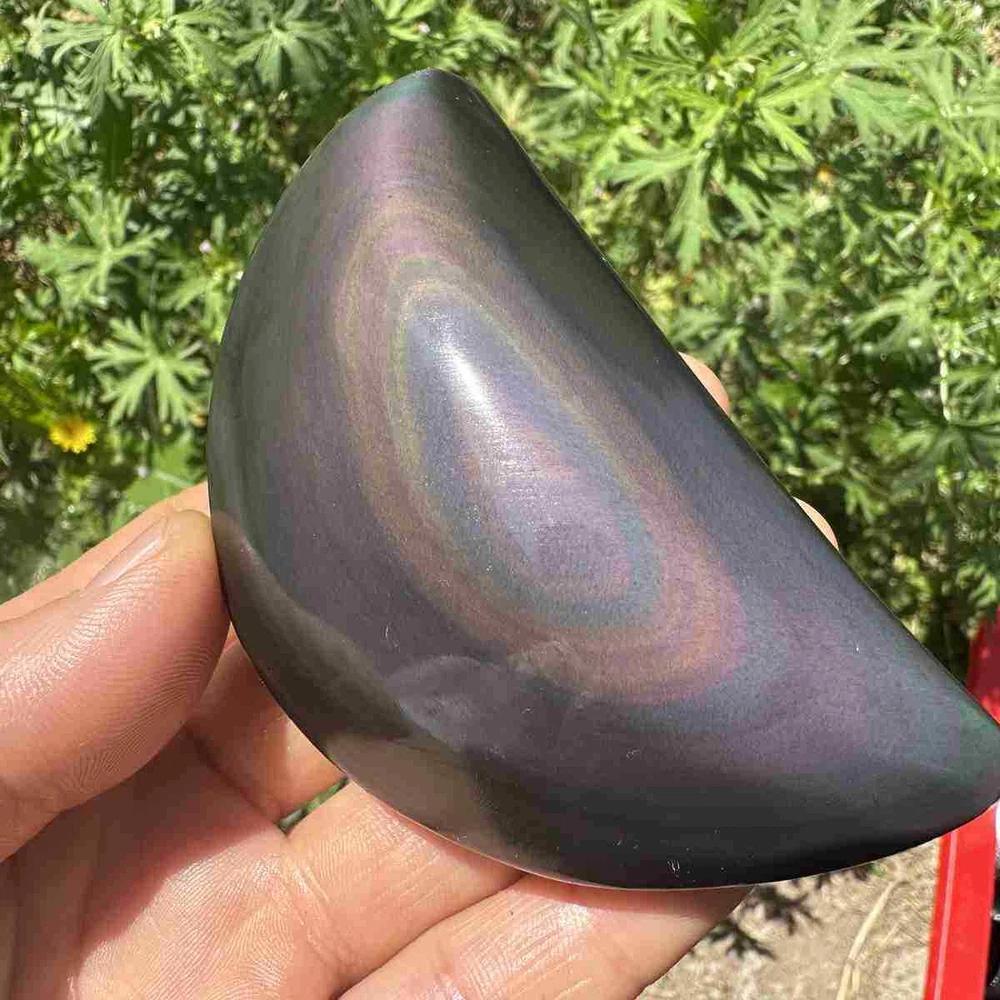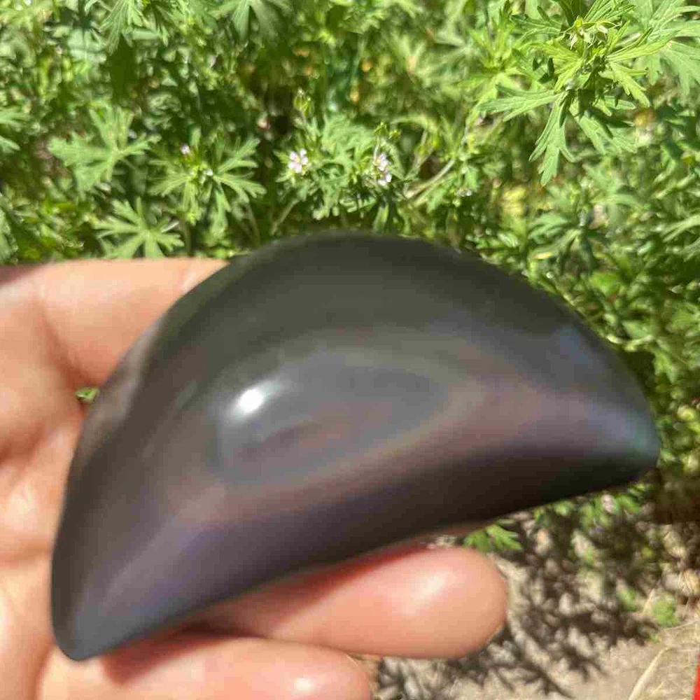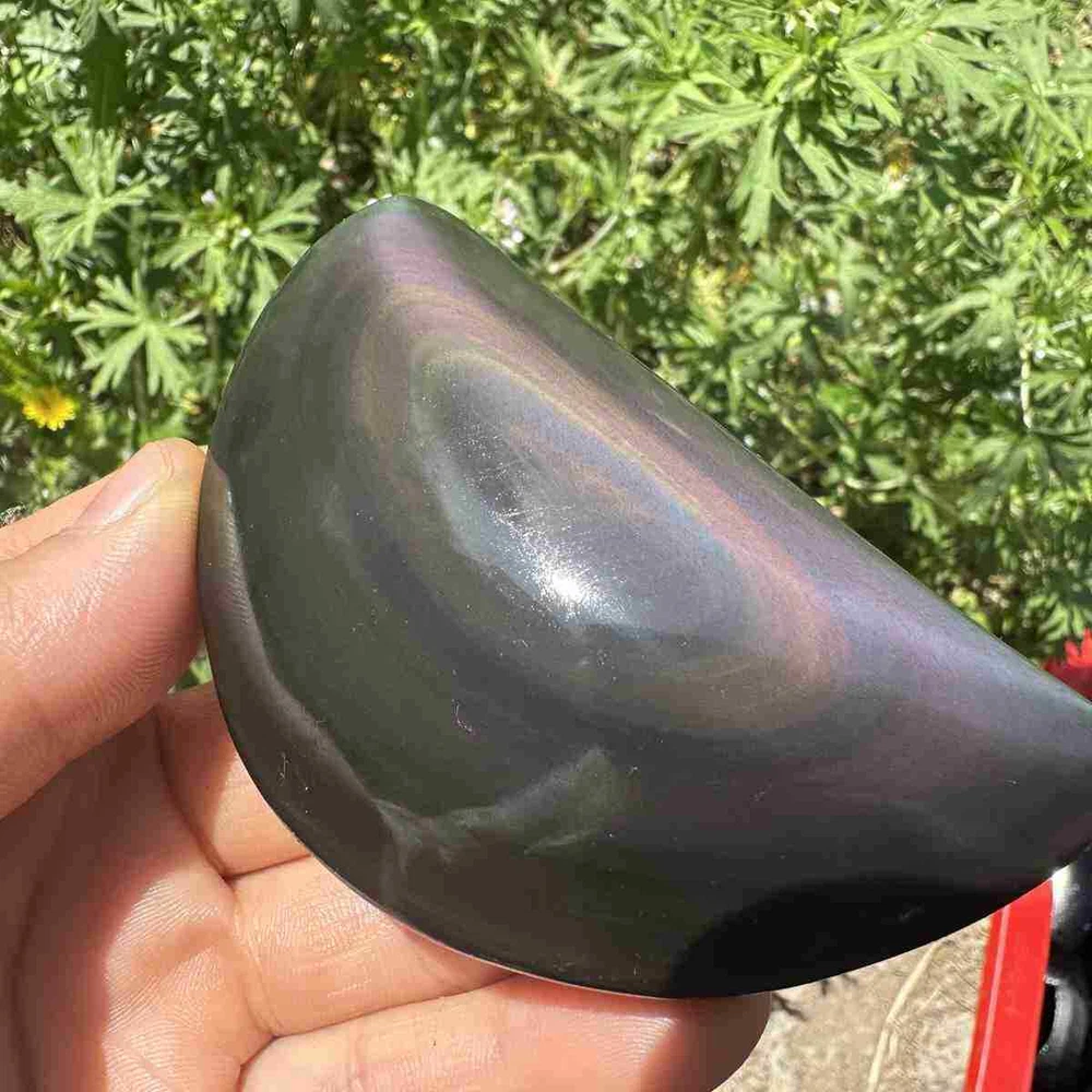 140g Natural Rainbow Cat's eye Obsidian palm Crystal Healing gift decor
