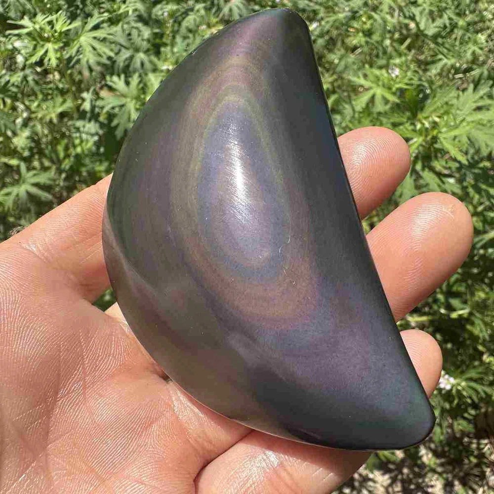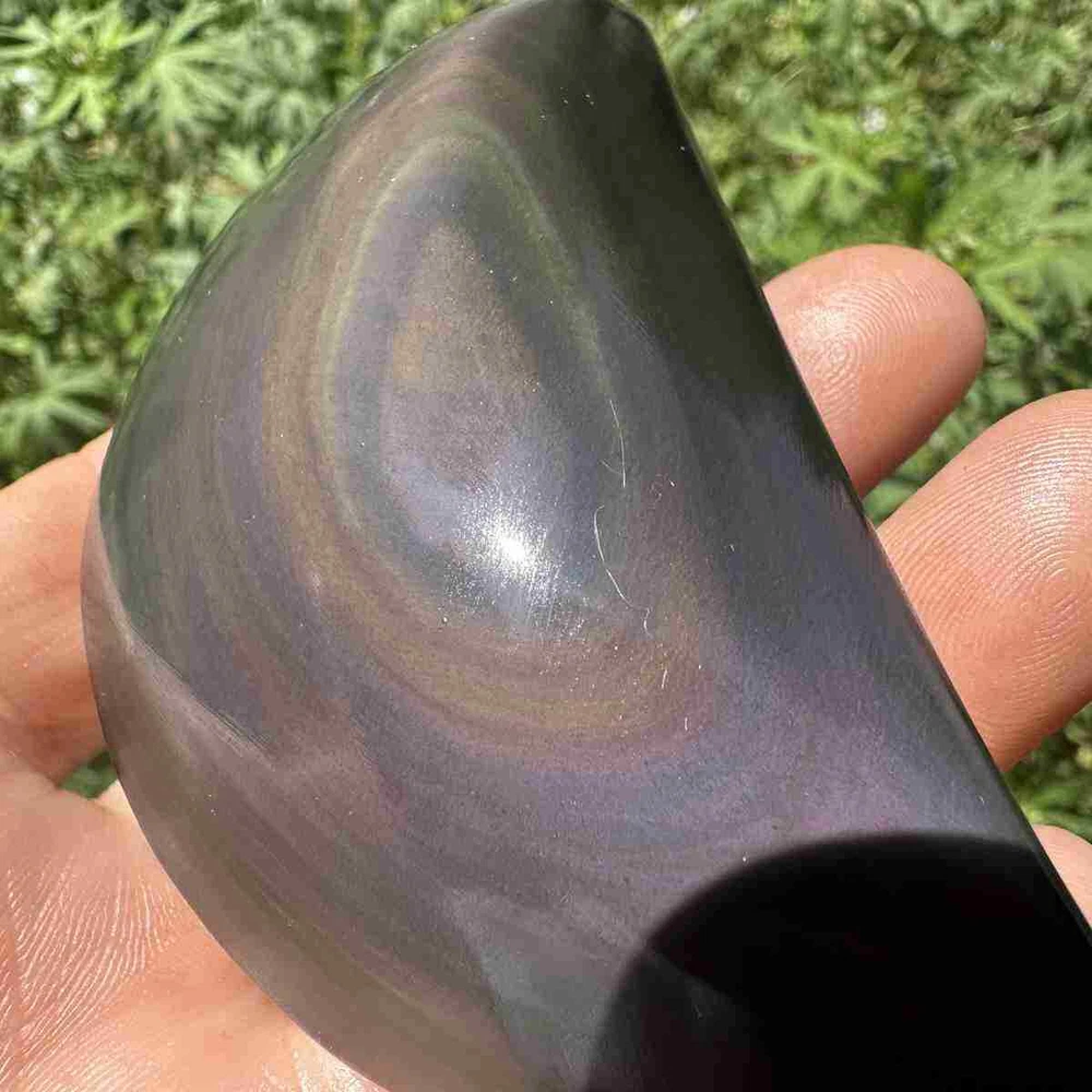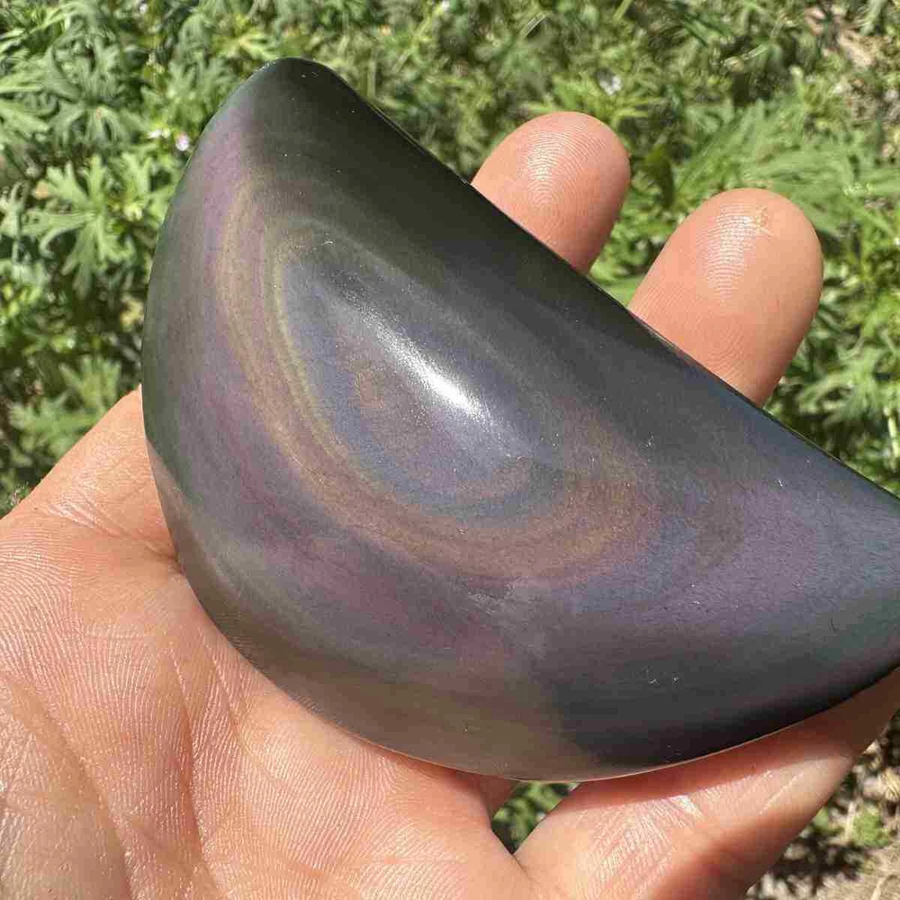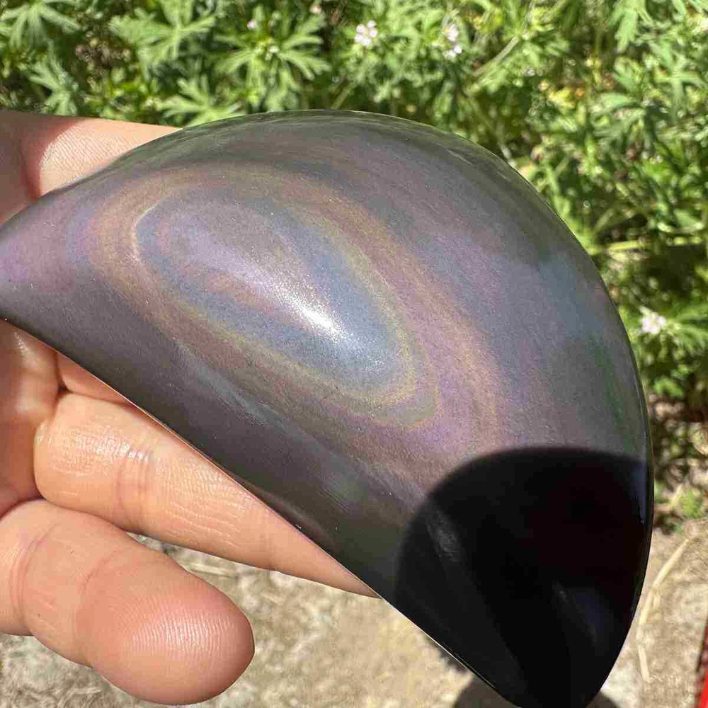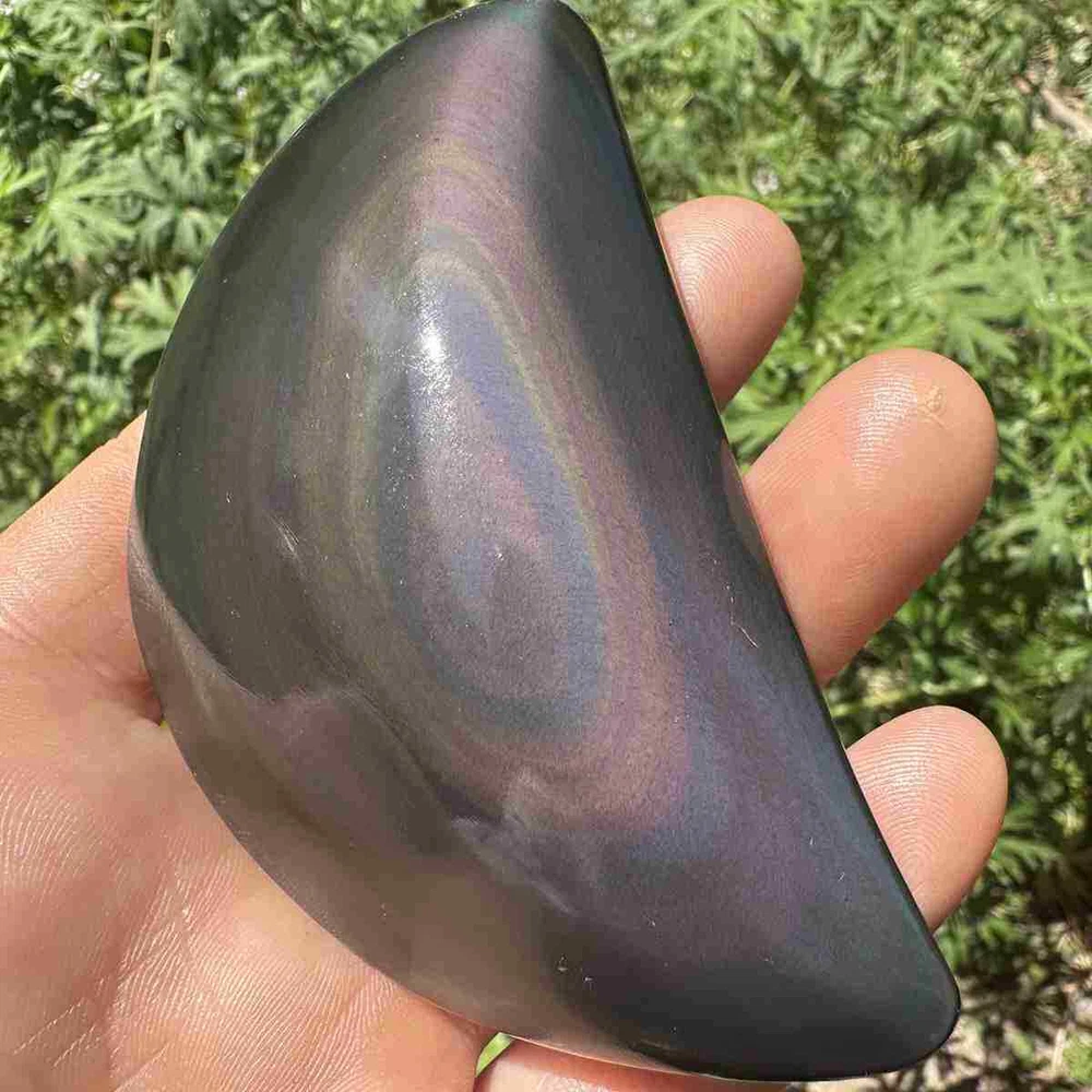 140g Natural Rainbow Cat's eye Obsidian palm Crystal Healing gift decor