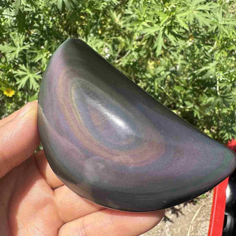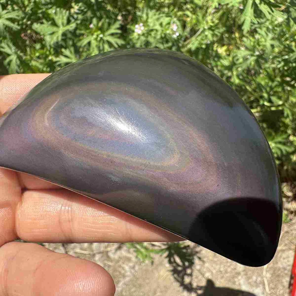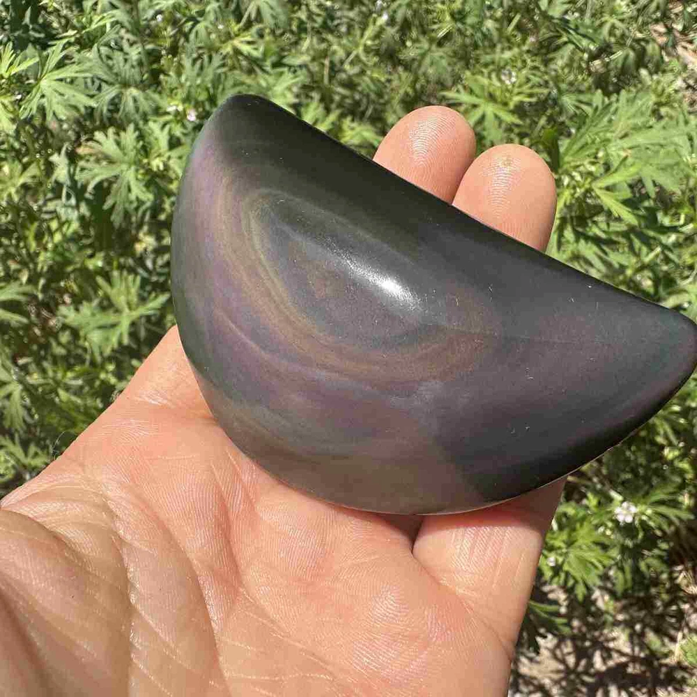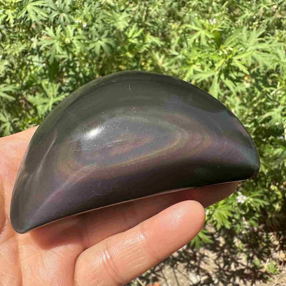 140g Natural Rainbow Cat's eye Obsidian palm Crystal Healing gift decor