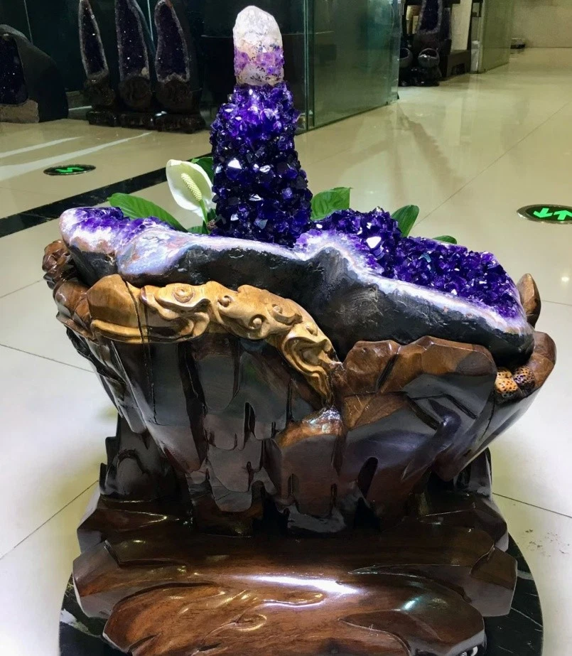 $ 2028.37268G Natural striped agate crystal cave carved heart-shaped quartz crystal-