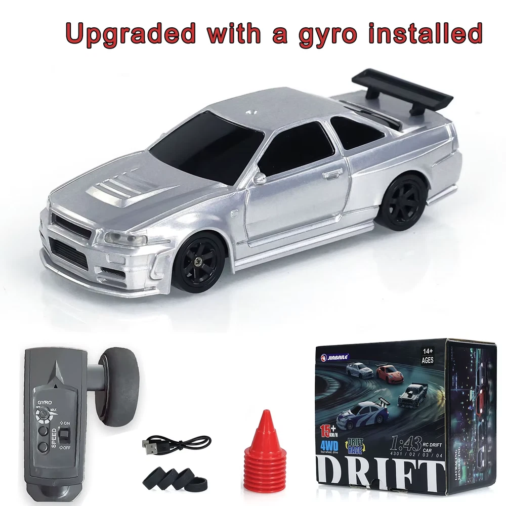 #1/43 Scale RC Drift Race Car Gyro 4WD Ready to Go Mini Car Toy High Speed Model Note: Four types are available to be purchased as description at ad. We'll ship according to your selection. Please reach out if there's any question. #Warm Tips: Please contact us if the controller doesn't work, we'll send a new one to you for maintenance. #Specification: Item Condition: New, Painted and Assembled Material: Plastic Scale: 1/43 Car Size: About 10.5*4*2.3(CM) Package size: About 18.5*16.5*11(CM) Net Weight: About 40G Gross Weight: About 400G Battery Capacity: 200mAh 3.7V Li Po Remote Control Distance: ≤20 meters Charging Time: About 30 minutes Working Time: About 30 minutes ID: JBL-4301G-RTR #The Package Includes: 1/43 Scale RC Drift Car Model*1 Remote Controller*1 Charging Cable (Type-C connector)*1 Tyres*4 Traffic Safety Cones*8 Instruction Book*1 #The Package Does Not Include: Batteries for the remote controller (recommended: AAA*4 1.5V) Light System Sound System #Features: 1.The car is fully assembled and designed for ease of use, making it an excellent option for beginners and children. 2.Enhanced with a built-in gyroscopic sensor for stabilized control and precise handling. 3.Comes with a 4WD system,ensure stable cornering and slope handling with improved traction and grip. 4.Equipped with a proportional remote control system that provides precise and responsive handling. 5.The TH LIMIT function offers adjustable speed settings at 20%, 50%, and 100% for customized performance. 6.Realistic simulation lights enhance the driving experience. 7.Enjoy up to 30 minutes of continuous operation after a full charge. #Assistance and Support: Our engineers, technicians, and customer service staff are available to assist with troubleshooting and finding solutions. #Customs Tax: For international orders, please be aware that customs and import duties may apply. These charges are paid by the customer and are not included in the product or shipping costs. You may have to contact us for more information on taxes or check with your local customs office.