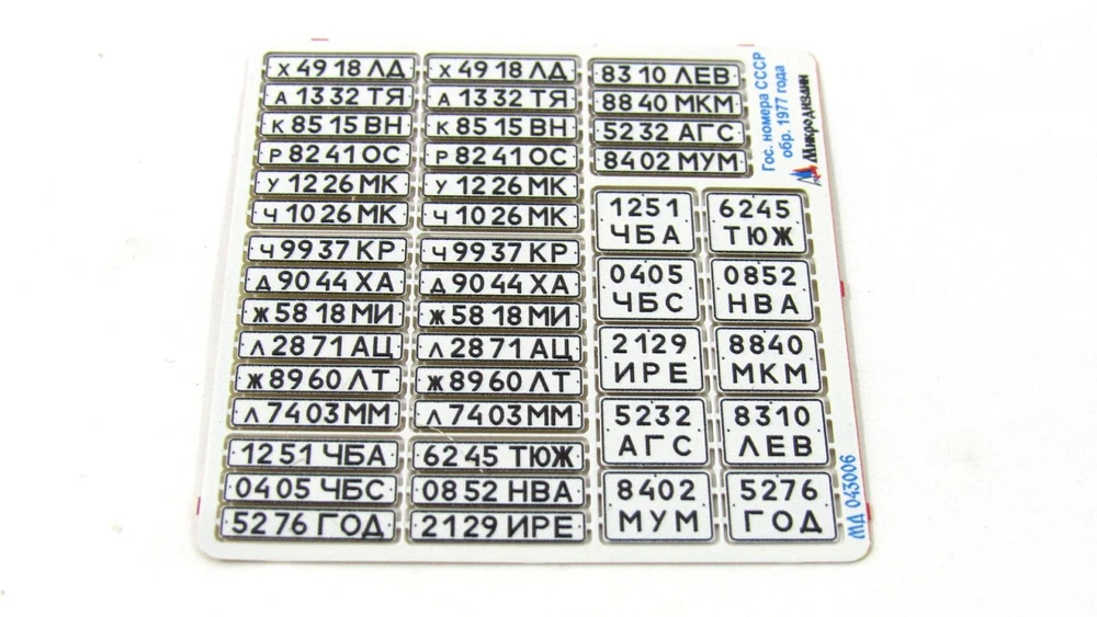 1/43 'USSR Car License Plates, Mod. 1977' Photo-Etched Detailing Kit (Microdesign MD043006) What Is It? Enhance the authenticity and historical accuracy of your scale-model vehicles with this photo-etched detailing kit . Specifically crafted to replicate USSR car license plates of the 1977 model , this set includes 20 unique variants representing different regions across the Soviet Union. Each plate is accurately detailed and vividly etched , adding unmatched realism to your classic vehicle models. Crafted using a unique new technology , this kit ensures precise results. Made from high-quality brass 0.14mm , it combines durability with exceptional detail . Ideal for both beginner and advanced hobbyists, this set allows you to create museum-quality displays . The simple instruction guide ensures effortless assembly and professional results. Who Is It Intended For? This detail set is perfect for: Modeling Enthusiasts striving for highly accurate historical details Collectors of classic USSR vehicles Beginner and advanced hobbyists looking to enhance their models Those aiming to create realistic dioramas or scale-accurate vehicle displays Benefits Enhanced Realism: Provides authentic license plates for various regions of the USSR Durable Material: Made from 0.14mm brass for long-lasting quality Comprehensive Kit: Includes 20 unique license plate variants Professional Finish: Delivers museum-quality results for display models Product Details Manufacturer Microdesign Product Code MD043006 Compatibility Classic USSR vehicle models Scale 1/43 Material Brass 0.14mm Technology Produced using high-precision photo-etching Difficulty Level Beginner Contents 1 Photo-etching plate with 20 unique license plate variants Simple instruction guide for easy assembly Number of Unique Parts 20 Kit Composition High-quality photo-etched brass components for precision detailing Accurately represents USSR license plates of the 1977 model from various regions Includes options for different regional designs Applications Perfect for enhancing: Classic USSR vehicle models Historic urban and rural dioramas Collector's displays with authentic detailing Historical Background License plates of the USSR, model 1977 were introduced to standardize vehicle identification across the Soviet Union. Known for their distinctive numbering and regional codes, these plates played a crucial role in transportation management and regulation. This detailing kit captures the authentic design and historical significance of these plates, allowing modelers to recreate Soviet-era vehicles with precision . Adding this Photo-etched kit your model will enhance the accuracy and realism of your model. How to Use Follow these steps to enhance your model: Carefully remove the photo-etched parts using precision tools. Clean attachment points with fine sandpaper for a smooth fit. Attach parts to your model using cyanoacrylate glue. Follow the instruction guide for accurate placement. Why Choose Imodeller's MD043006? Authentic Detailing: Accurately replicates the USSR car license plates, mod. 1977 Durable Construction: Made from high-quality material for enhanced longevity and precision. Advanced Difficulty: Perfect for experienced modelers looking for professional-level detail. Professional Results: Ensures a museum-quality finish suitable for competitive and display purposes. Upgrade Your Classic Vehicle Models Now! Enhance your classic vehicle models with this precision photo-etched detailing kit. Order now and achieve exceptional accuracy! Shipping Information Item Location: USA Fast Shipping: Item will be shipped immediately after payment.