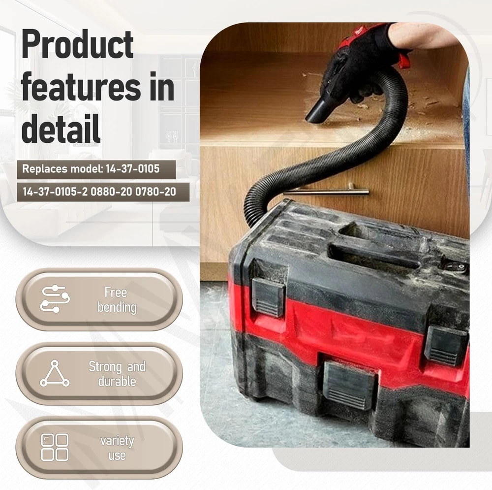 Replaces model: 14-37-0105 14-37-0105-2 0880-20 0780-20 For Milwaukee 18V/28V Cordless Wet/Dry Vacuum Models: 0880-20 0780-20 14-37-0105 is a hose for internal storage, not an external storage hose, so it is not compatible with the 14-37-0160 18V Wet/Dry Vac Hose Assembly The surface of the hose is very smooth, and this smooth design effectively blocks dust adhesion, making it easier to remove dust and debris. The bending ability of the hose is very good. If the bending ability of the hose is weak, the pipe will be easy to break, which will not only affect the working quality of the equipment, but also is not conducive to the long-term use of the equipment. So our hose has a very strong bending ability, which can bring us better service. Product Description