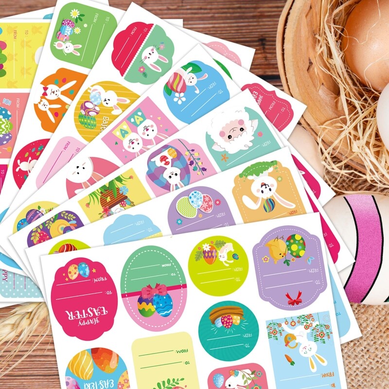 144 Easter Labels & Envelope Seals for Baking Decor in 8 Unique Patterns