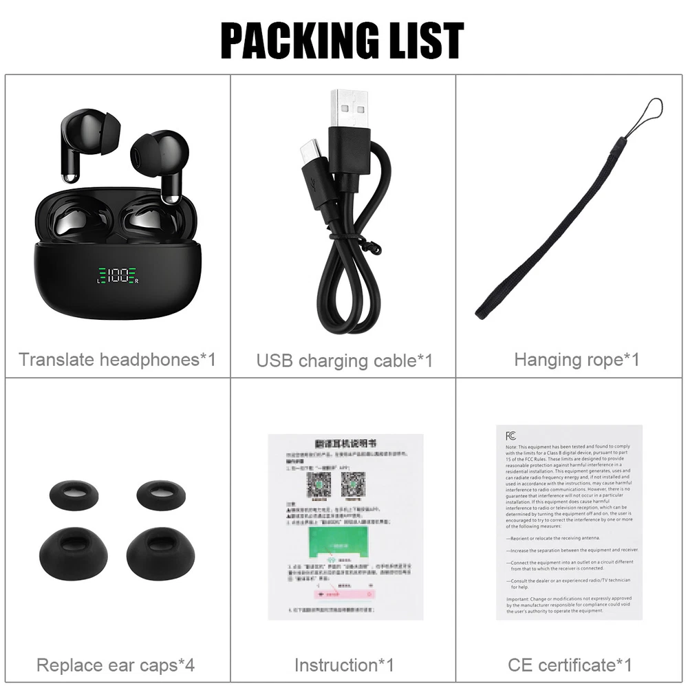 Product Description Translator Earbuds Wireless Bluetooth Two Way Translator Device 144 Languages UK Parameters: Material:Plastic Category:Earphones & Headphones Earcups Type:Sealed Number Of Drivers:2 Charging Method:Charging case Headphone Pads Material:other Magnet Type:other Driver Diameter:12mm Total Harmonic Distortion:1% Impedance Range:up to 32 Ω Bluetooth Version:5.3 Package List:Charging case Features:With Microphone Codecs:Apt-X With Microphone:Yes Is wireless:Yes Support APP:No Support Memory Card:No Waterproof:No Resistance:32ΩΩ Line Length:NOm Frequency Response Range:20 - 20000Hz Sensitivity:108±5dBdB Plug Type:Line Type Function:For Internet Bar,Monitor Headphone,for Video Game,Common Headphone,For Mobile Phone,HiFi Headphone,Sport Active Noise-Cancellation:Yes Volume Control:Yes Control Button:No Vocalism Principle:Balanced Armature Wireless Type:None Connectors:USB Communication:WireLess Style:In-ear Certification:CE Origin:Mainland China Brand Name:SZLHRSD Models:SP9X Charging Time:About 1 hour Charging Time Feature 2:Hands Free Earphone/Casque Audio/Ear Buds Feature 3:Hands Free Earphone/Casque Audio/Ear Buds Feature 4:Blutooth Earphone/Gaming Headset/Sport Wireless Earphones Feature 5:In Ear Headphones/Ear Phones/Noise Canceling Headphone Function 1:Operation Range 10 Meters/Bluetooth V5.0/With Microphone Function 2:About 1 Hour Charging Time/About 150 Hours Standby Time; Compatible 1:For iPhone 14 12 13 Pro Max XS Max XR X 8 7 Plus Compatible 2:For Huawei P40 P50 P60 Pro Mate 20 lite Oneplus 7 6t TWS Earbuds Compatible 3:For Samsung S23 W23 S21FE S22+ Bluetooth Headphone Compatible 4:For Xiaomi Mi 13 10s Mi 12 Bluetooth Headphone Headphone power:25mah Bluetooth effective distance:> 10m Usage time:about 4-5 hours (80% power) Packing list: 1 * Translate headphones 1 * User Manual 1 * CE certificate 1 * USB charging cable 1 pair to replace ear caps 1 hanging rope Payment We accept PayPal only. If buyer want to delay the payment because of financial problem, please contact me by the ebay message within 3 days Payment via PayPal (PayPal accepts all major credits/debit cards and eCheque) ECheque payment will tak e 3-10 days to get clear, thus DELAYing the shipment. Shipping Handling time: 1 business day (Orders are not processed on weekends & holidays) Tracking information will be sent once item is shipped. Local pick-up is unavailable at the moment. For international shipping and shipping to Guam, Hawaii and Alaska, Please contact us before placing the order. Item is shipped to ebay address. Leaving correct address can minimize delay. Terms For any issues with Defects, Return, Item Exchange request, please contact us first and send us a message first before opening any type of case or request. We devote ourselves making EVERY CUSTOMER in 100% Satisfactory and resolve any problem. We highly value and appreciate your business. Thank you. No returns will be accepted without an RMA number. Please contact us for the RMA number. Return is acceptable within 30 days of delivery. Return for replacement or money back is optional. Returned items must be in the brand new, unaltered and resalable condition. Seller is not responsible for any labor cost, expense in a dealer store, or damage due to wrong installation. Returns Return is accepted within 14 days after the buyer's receiving the item. (Excluding contrived damagement or misusage).100% money-back Guaranteed! All product will be tested in 100% before delivery.If the item is defected by the processing of postage,Buyer has up to 14 days from date of receipt for exchange of a new one.All shipping charges for returned products are to be paid by the buyer,Please contact us for the return address Contact Us All messages will be answered within 24 office hours. Please contact us either by clicking "contact seller" in the "purchase history" section or simply click "ask a question" at the bottom of this page. If you are unsatisfied with our item or service, please contact us before leaving any feedback. We are committed to resolve all issues in a friendly and satisfactory manner. We always reply to messages within 2 business days (off-duty at weekend). If you do not get a response from us, then please check your junk or spam mailbox. powered by