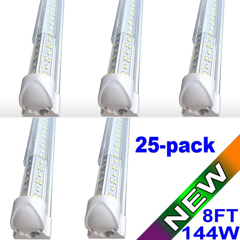 FAST DELIVERY - Ship from New Jersey or Los Angeles Warehouse via FedEx , 3-7 Days Delivered Your Door . SCIENTIFIC DESIGN - 8Ft LED Shop Lights Fixture is Made of 6500K Cold White SMD2835 LED Chip ,Plastic Clear Cover , Aluminum Bracket Housing ,and AC85-277V Constant Current Driver . It can work in -68F to 120F Temperature Conditions EASY INSTALLATION - The Integrated Tube Fixture Can be Install on Wall or Ceiling ,Easily Replace Traditional Fluorescent Tube Bulb . Plug and Play , Free Accessories (Power Cords, Connector , Extension Cords , Clip and Screw ) Come with Tube Lights Together WIDE APPLICATION - Linkable 8Ft Bulbs Widely Used in Garage Ceiling , Barbershop , Schools, Hospitals Basement , Factory Warehouses , Supermarkets Cooler Door , Offices, Shops,Hotels, etc 144w 8 foot led shop lights led Strip Lights 25PC Cold White LED Garage Lights FAST DELIVERY - Ship from New Jersey or Los Angeles Warehouse via FedEx , 3-7 Days Delivered Your Door . SCIENTIFIC DESIGN - 8Ft LED Shop Lights Fixture is Made of 6500K Cold White SMD2835 LED Chip ,Plastic Clear Cover , Aluminum Bracket Housing ,and AC85-277V Constant Current Driver . It can work in -68F to 120F Temperature Conditions EASY INSTALLATION - The Integrated Tube Fixture Can be Install on Wall or Ceiling ,Easily Replace Traditional Fluorescent Tube Bulb . Plug and Play , Free Accessories (Power Cords, Connector , Extension Cords , Clip and Screw ) Come with Tube Lights Together WIDE APPLICATION - Linkable 8Ft Bulbs Widely Used in Garage Ceiling , Barbershop , Schools, Hospitals Basement , Factory Warehouses , Supermarkets Cooler Door , Offices, Shops,Hotels, etc