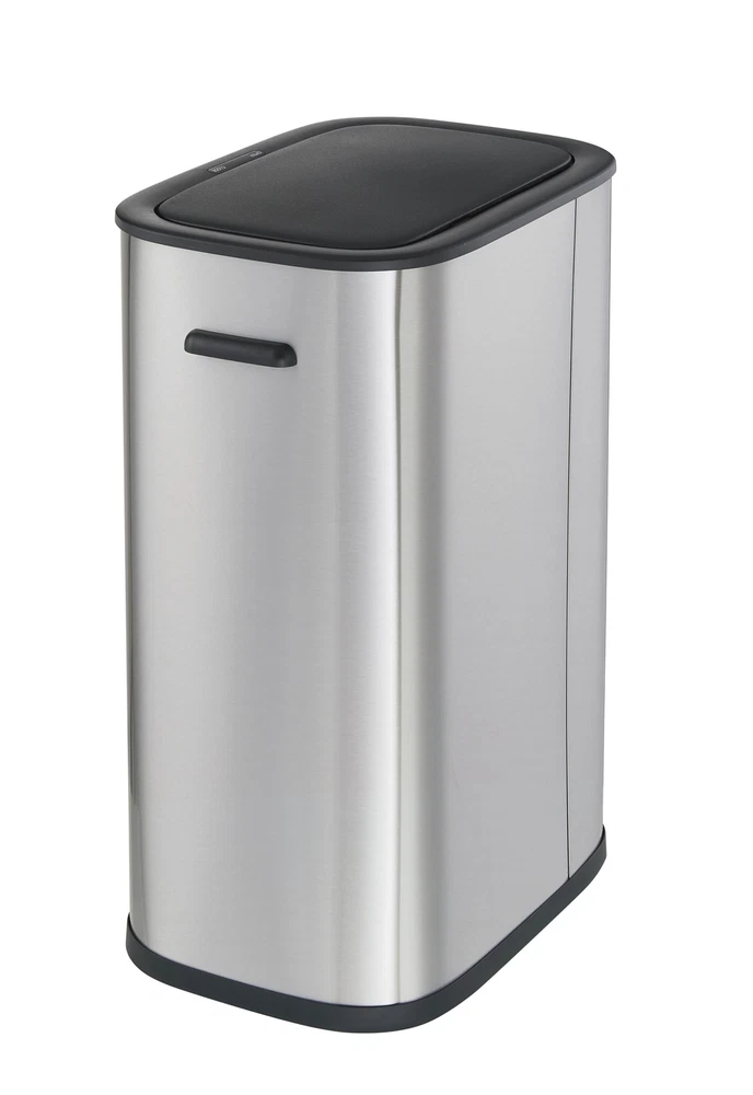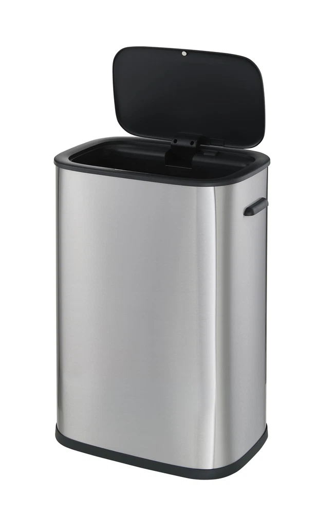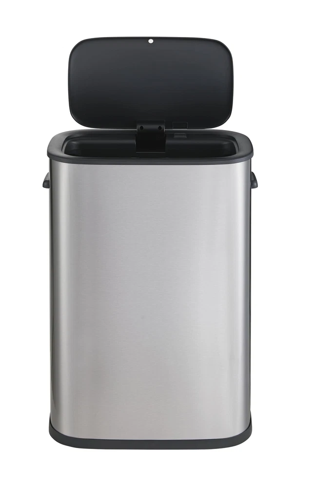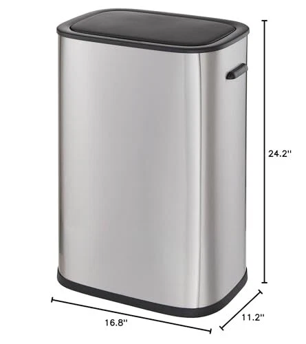 Introducing the Large Kitchen Trash Can with Soft Close and Smudge-Resistant Finish, the ultimate solution for keeping your kitchen tidy and stylish. Crafted with functionality and aesthetics in mind, this trash can is designed to elevate your kitchen experience. The generous size of this trash can ensures ample space for disposing of all your kitchen waste, whether it's food scraps, packaging, or other garbage items. Say goodbye to frequent trips to the outside bin, as this large capacity can holds more, reducing the need for constant emptying. One of the standout features of this trash can is its soft-close lid mechanism, which ensures gentle and quiet closing every time. No more loud slamming of the lid, preserving the tranquility of your kitchen environment, especially during late-night disposal runs. The smudge-resistant finish not only adds a sleek and modern touch to your kitchen decor but also keeps the trash can looking clean and presentable at all times. Say goodbye to unsightly fingerprints and smudges, as the durable finish effortlessly repels marks and stains, maintaining its pristine appearance with minimal upkeep. Crafted by , a brand synonymous with quality and innovation, this trash can is built to withstand the rigors of daily use. Its sturdy construction ensures long-lasting durability, making it a reliable addition to your kitchen for years to come. In summary, the Large Kitchen Trash Can with Soft Close and Smudge-Resistant Finish combines functionality, style, and durability to provide you with a premium solution for managing kitchen waste. Upgrade your kitchen experience with this essential accessory that complements any modern home. This 14.5-gallon trash can offers a large interior volume, catering to the needs of big families. Water-resistant infrared motion sensor prevents moisture or any accidental spills from damaging the unit. Plust finger-print resistant stainless steel base helps keep the can clean. Delay sensing technology preserves battery life and prevents any unnecessary opening from pets, children, or walking by. Quiet closing function for longivity of product life. The trash can’s stainless steel wire drawing is fingerprint-resistant and easily cleaned after sustained use, while the sealed exterior and infrared technology ensures odor is contained. Our automatic trash can is ideal for virtually any setting. Whether you’re in the kitchen, bedroom, bathroom, office, or even your study, this trash can is an effective and attractive addition. EASY TO MAINTAIN: Finish naturally hides fingerprints, smudges and dirt.