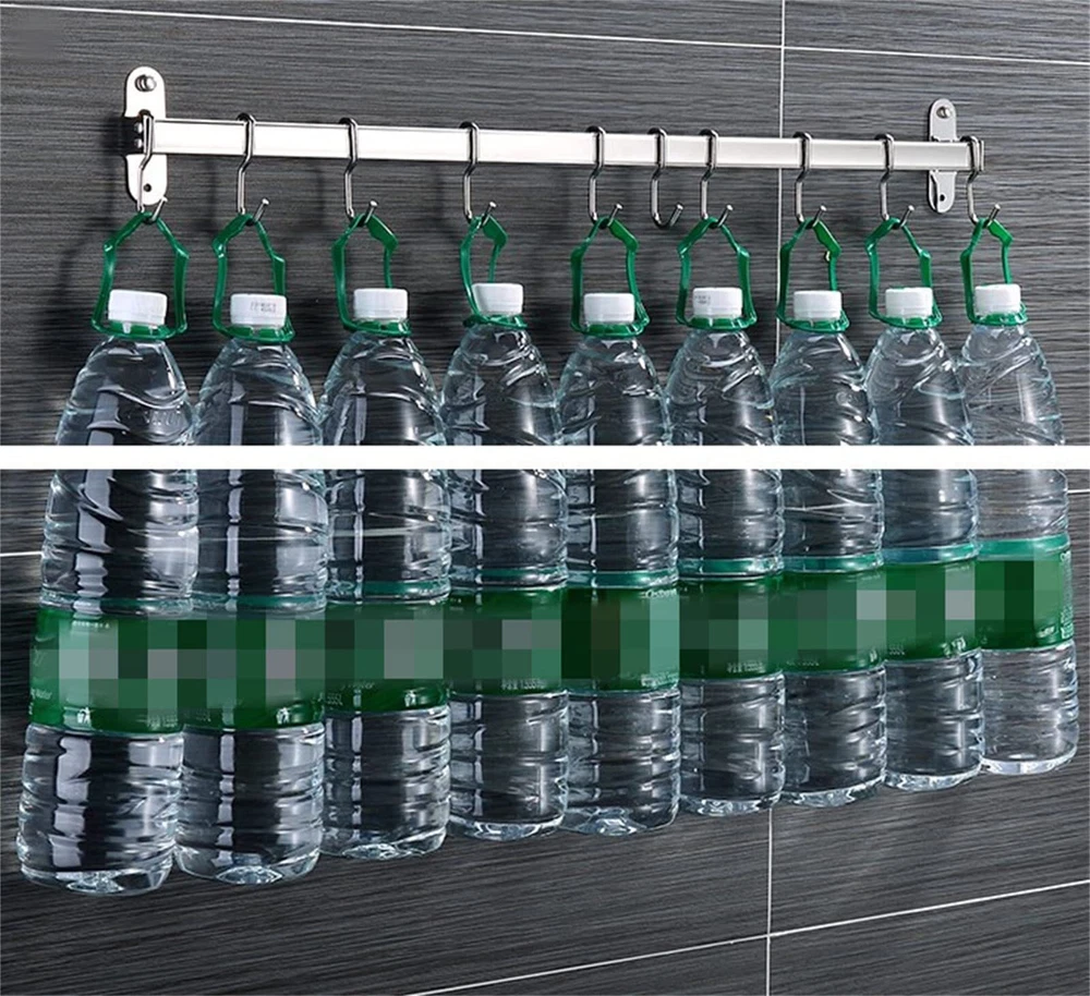 Tidying up your kitchen accessories, cooking gadgets, this kitchen utensil holder helps you be handier around the house and feel like a professional cook by making your pots, pans, lids and utensils easy to reach. Simply adhesive wall to maximize storage space. saves time and hassle searching for desired items. This wall pot rack helps you keep the clutter at bay with its s hooks for hanging. Place your utensil and create kitchen wall decor while making them within' arms reach! Product Specification Size: 14.6 x 3.1 x 1 inch Material: stainless steel Color: silver Package: 1 x Hanging Pot Rack with 6 Hooks Tidying up your kitchen accessories, cooking gadgets, this kitchen utensil holder helps you be handier around the house and feel like a professional cook by making your pots, pans, lids and utensils easy to reach. Simply adhesive wall to maximize storage space. saves time and hassle searching for desired items. This wall pot rack helps you keep the clutter at bay with its s hooks for hanging. Place your utensil and create kitchen wall decor while making them within' arms reach! Product Specification Size: 14.6 x 3.1 x 1 inch Material: stainless steel Color: silver Package: 1 x Hanging Pot Rack with 6 Hooks 【POT RACK WALL MOUNTED】pot hangers for kitchen wall mount can be mounted on wall to store pans, pots, spatulas and bakeware in an organized way. This simple and elegant wall pot rack is suitable for all decoration styles in stylish kitchen. 【POT RACK WALL MOUNTED】pot hangers for kitchen wall mount can be mounted on wall to store pans, pots, spatulas and bakeware in an organized way. This simple and elegant wall pot rack is suitable for all decoration styles in stylish kitchen. 【EFFCIENT EASY ORGANIZATION】Kitchen hanging rack is a perfect storage and organizing solution for kitchen.6 hooks can save a lots space so that keep utensils and gadgets within easy reach, no more digging through pots and pans looking for what you want. Making your home seem less cluttered 【MULTIFUNCTIONAL POT AND PAN RACK】This pots and pans rack can be used to organize pots and pans, spoons, cups and other kitchen utensils. And this rack for pots and pans rail can be used as a towel rack or a pot lid hanger.