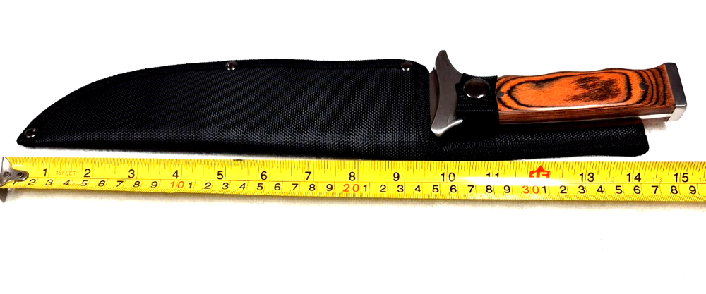 This item is for one new 14.75" hunt knife. Our number 9075or 440 stainless steel. Approximate over all length is 14.75" Blade length approximately 9.5". Approximately 2"+- wide blade. Approx. weight of knife only=1 pound. By purchasing this product you are stating that you are of legal age allowing you to purchase this product and in compliance with all local laws. By purchasing this product you are stating that product that you are buying is legal at your location and product destination. We are not responsible for the product use or misuse. Free shipping. Thank you