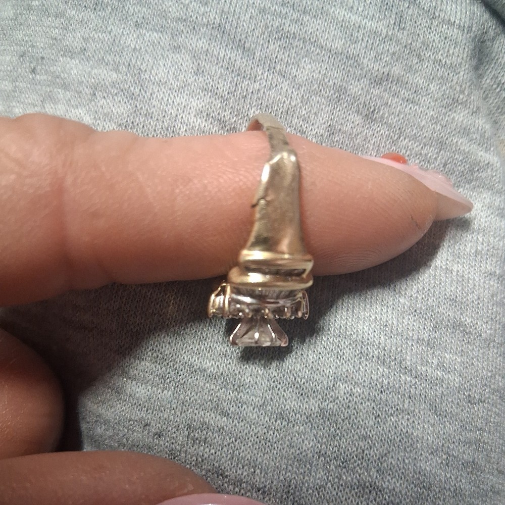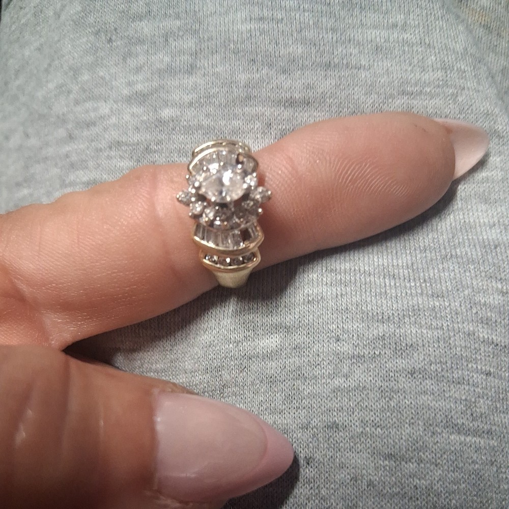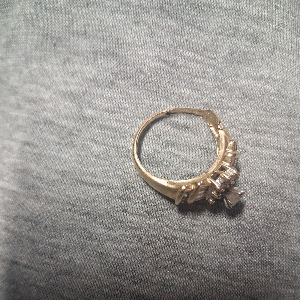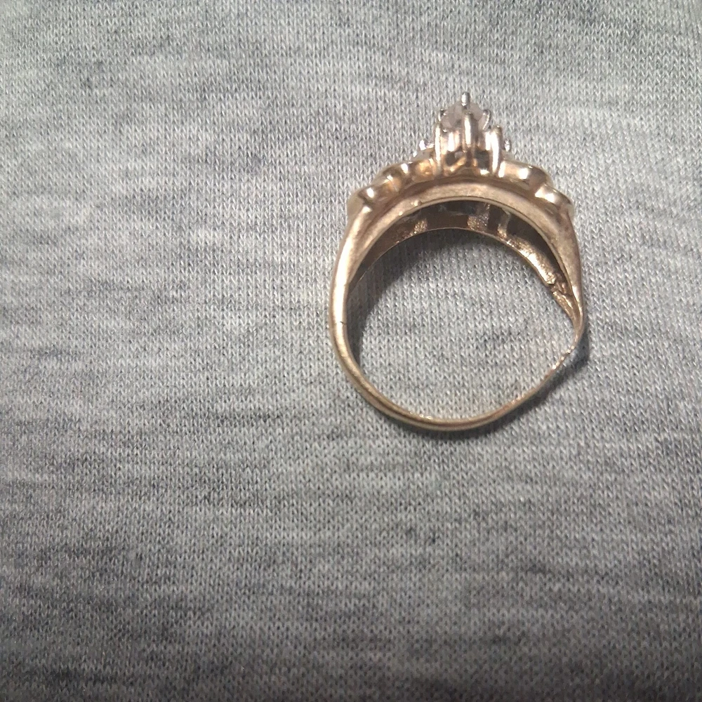 This product is a stunning 1.49ctw Marquise Cut Diamond with Halo Engagement Ring crafted in 14k Yellow Gold. The ring features a beautiful main diamond with an estimated carat weight of .53ct, secondary diamonds with an estimated carat weight of .60ctw, and a diamond clarity grade of Slightly Included (SI2). The ring has a halo setting style and a metal weight of 4.20dwt. With a ring size of 6 and a main stone length of 7.8mm, this elegant piece of jewelry is perfect for any woman looking for a breathtaking engagement ring. It has two diamonds missing one on each side in the same place. and it is bent just a little but it can be fixed, it can be worn with it bent. this is why the price is lower than it's appraisal is.