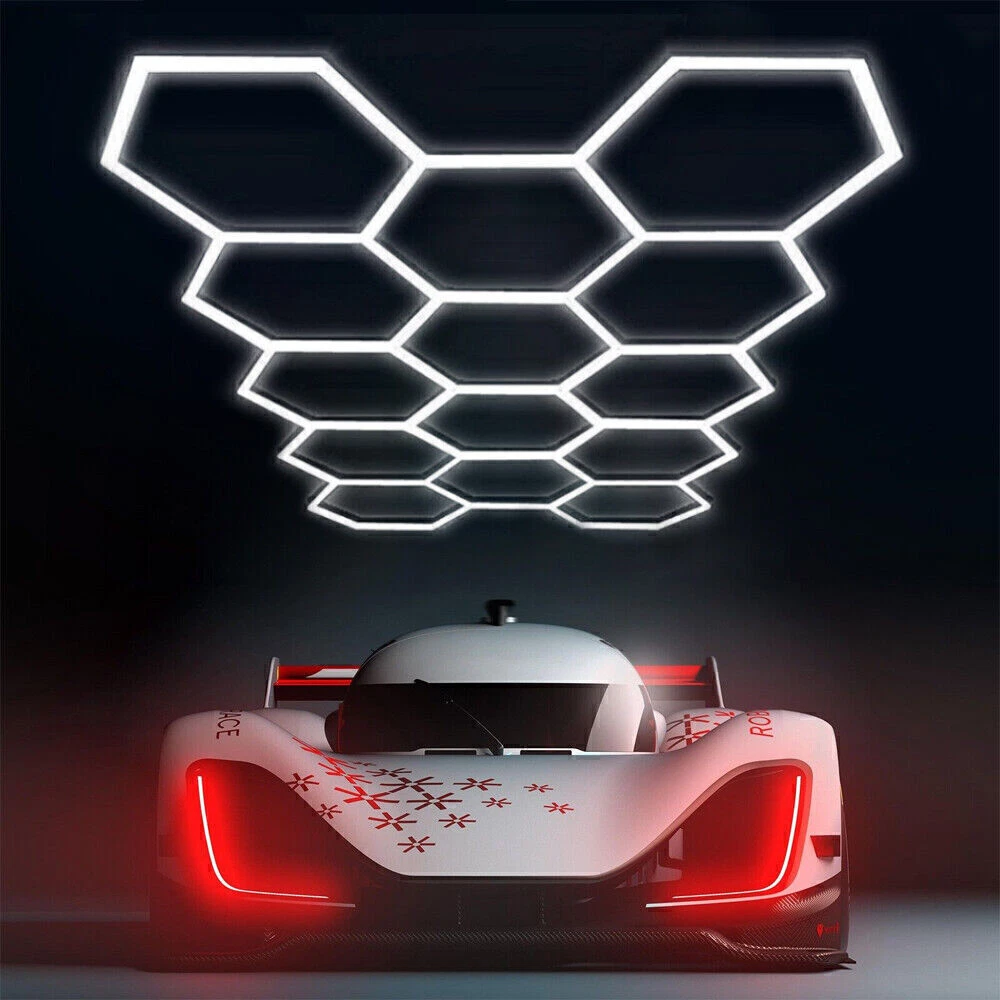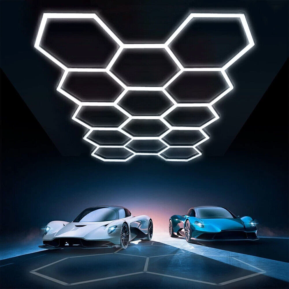 14-Grid Hexagon LED Lighting Car Detailing Garage Workshop Light Honeycomb USA