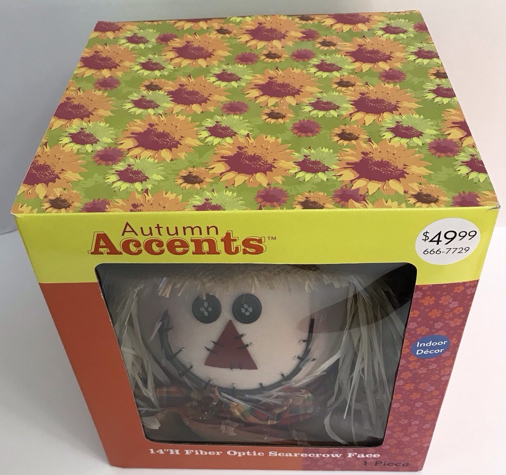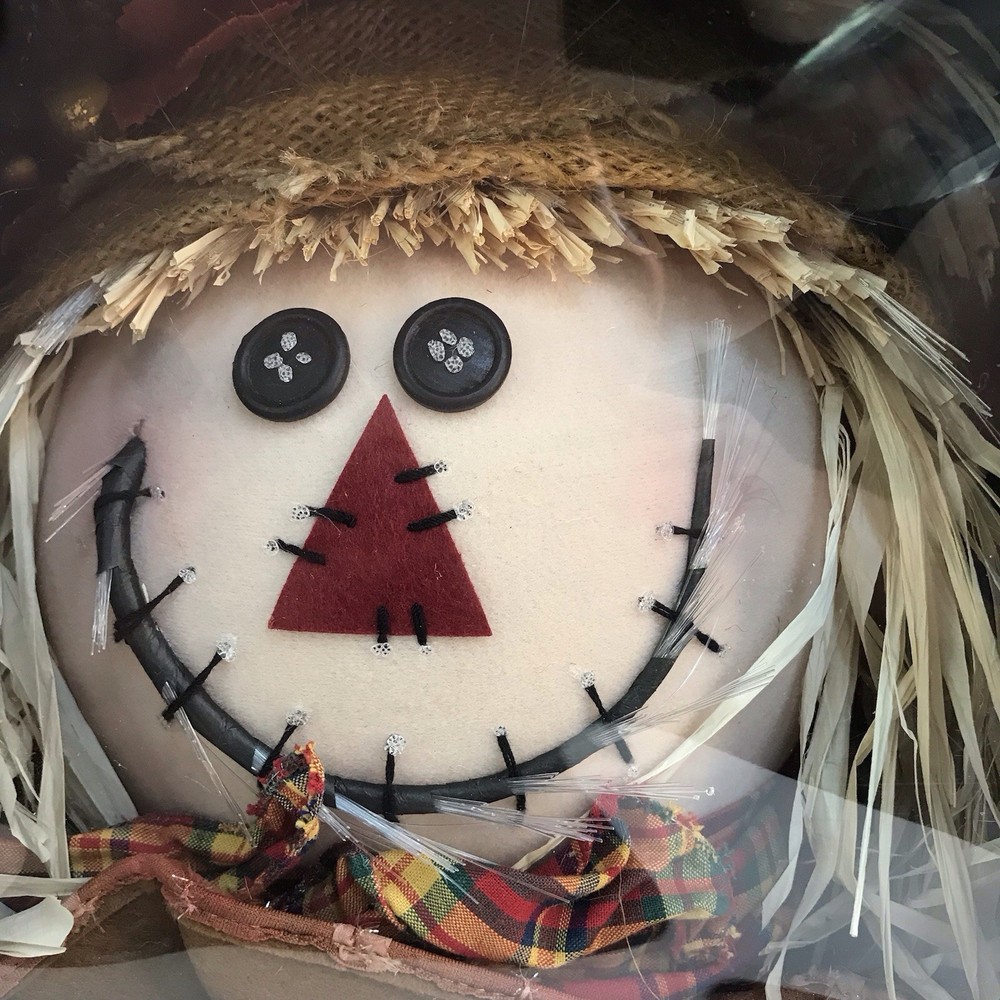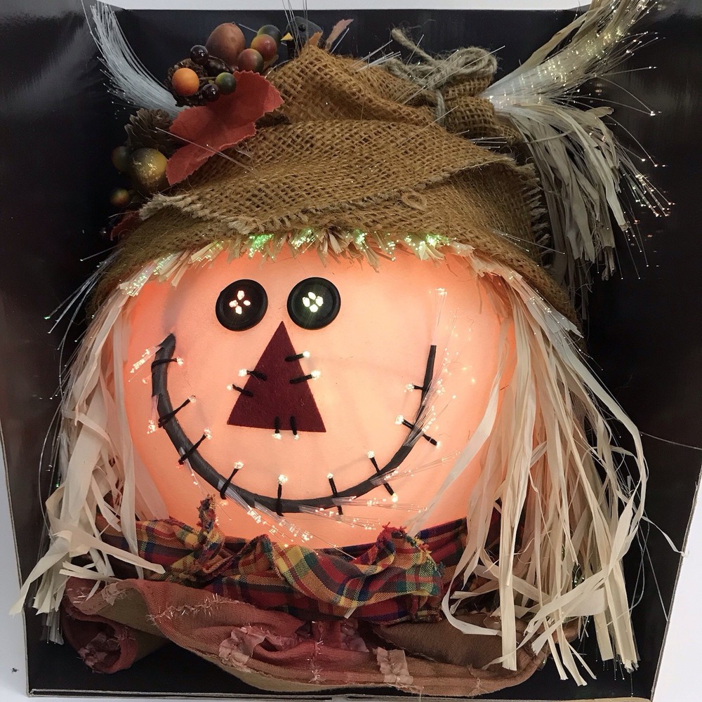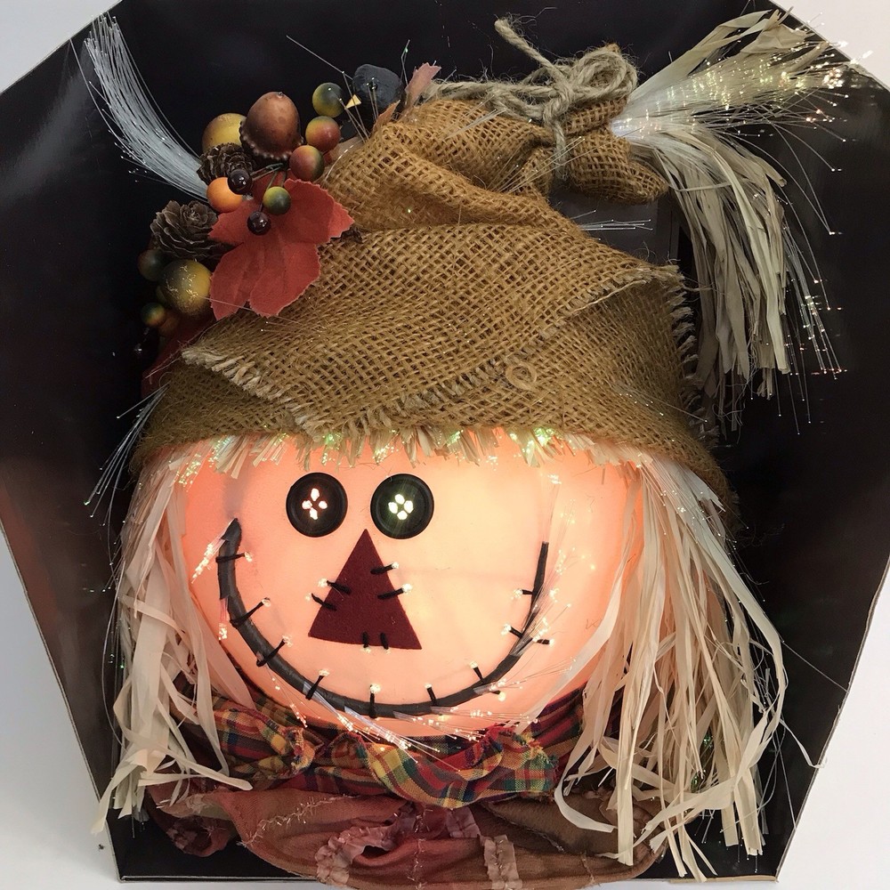 Autumn Accents Fiber Optic Scarecrow Face 14 Inch Halloween Thanksgiving NEW