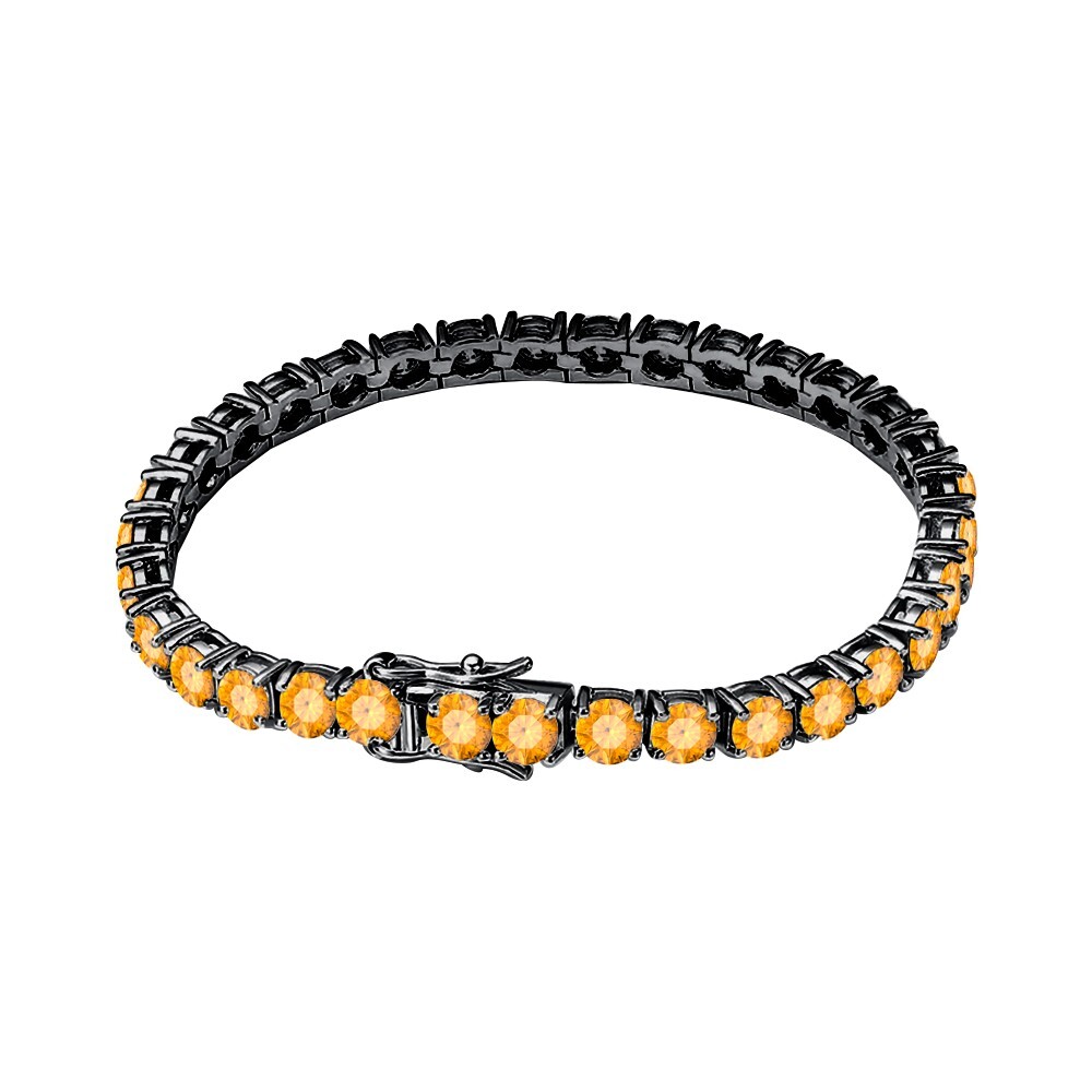 Gift 14ctw Round Yellow Sapphire 14K Black Gold Plated Silver Tennis Bracelet 8"