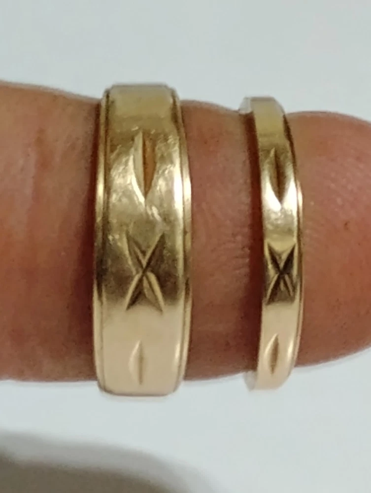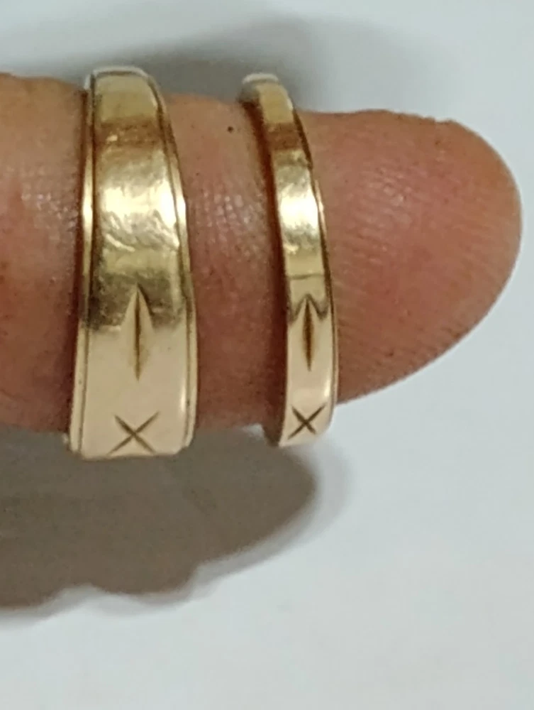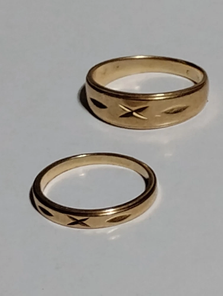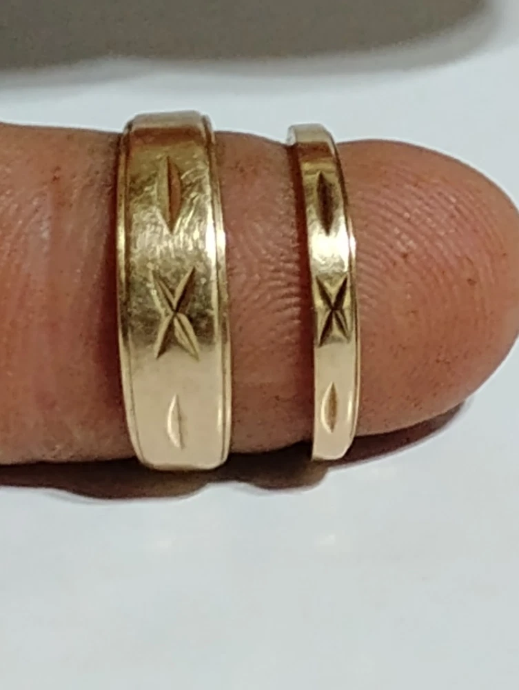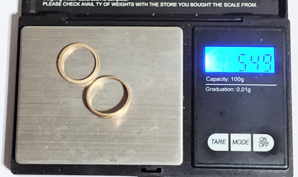 **5.49 grams total gold weight** Shipped via Priority Mail** Up for bids is a very nice pair of 14K Rings. Size 5.5. Beautiful Wedding or Engagement set with Nice Designs. The Buy it Now Price reflects the jewelry's craftsmanship value. Gold acid test confirms 14K. Good luck on the bidding & God bless.