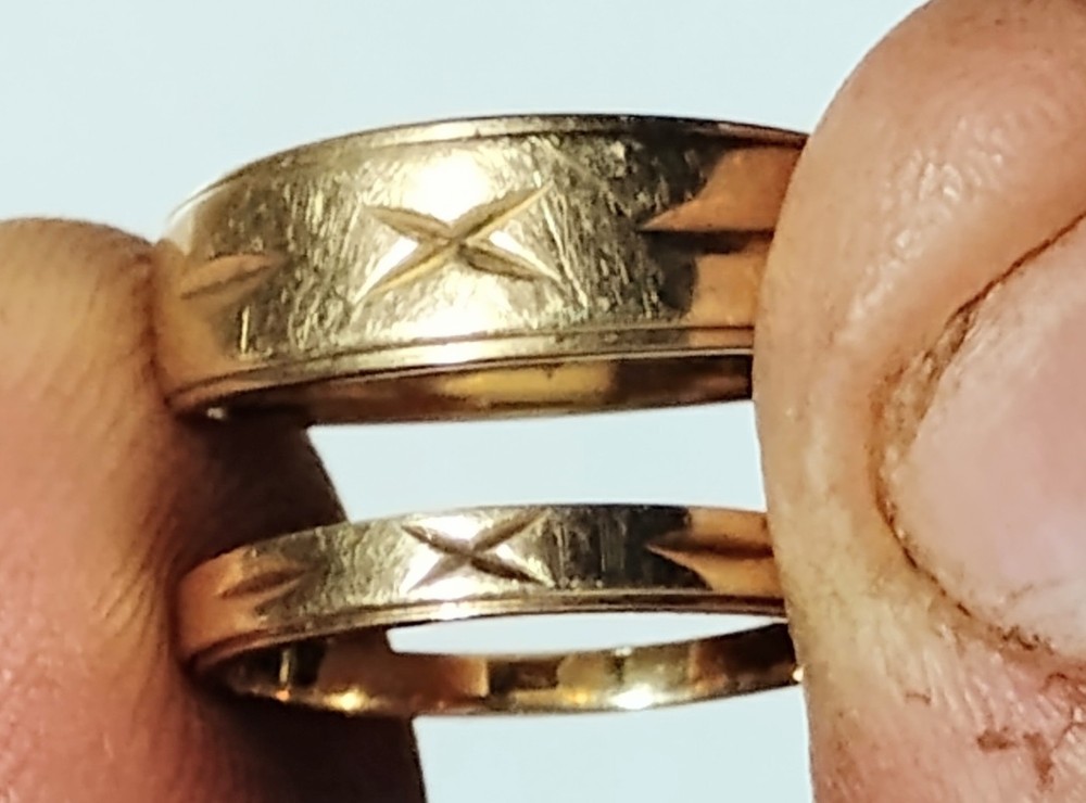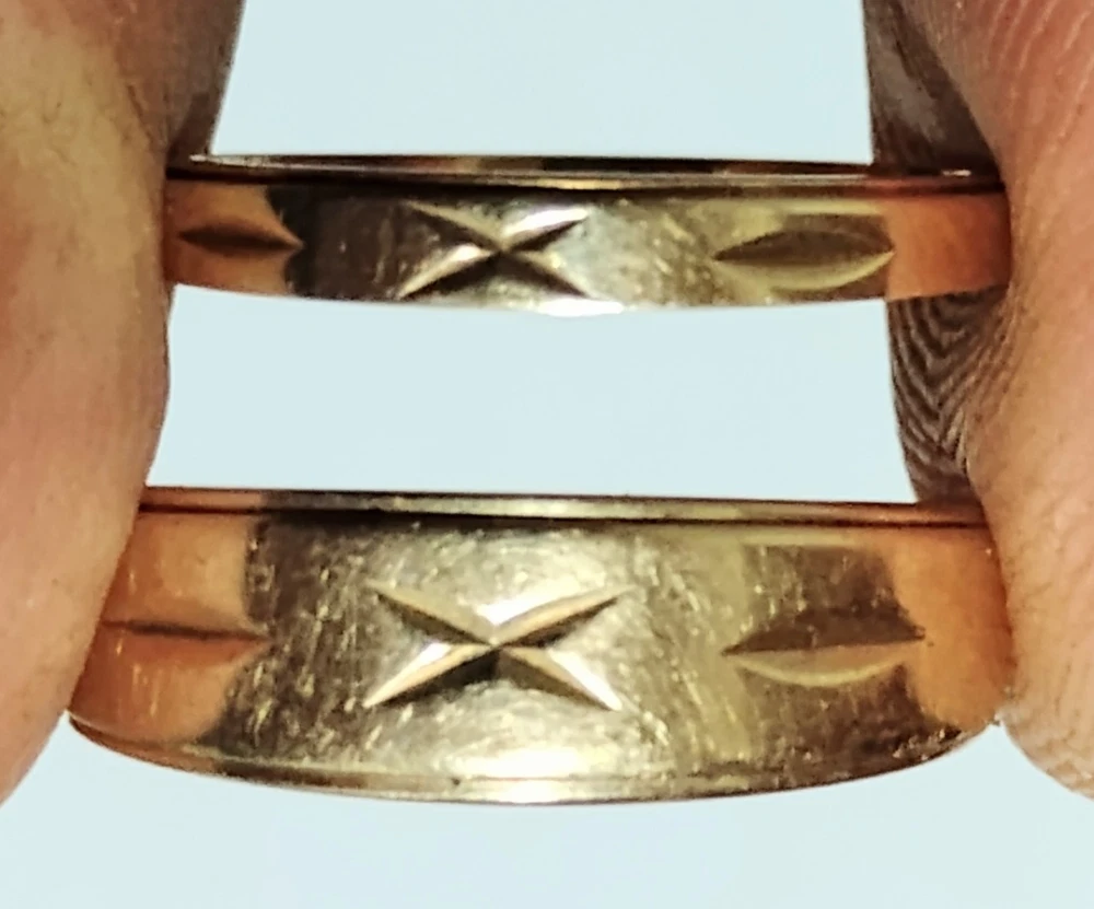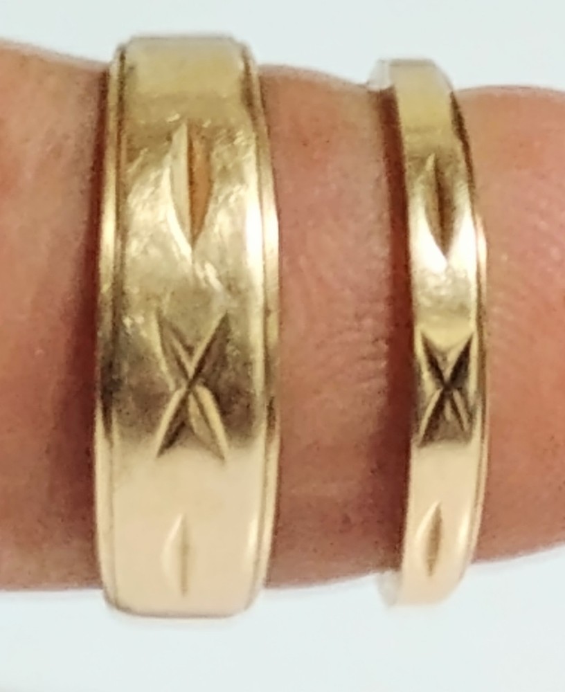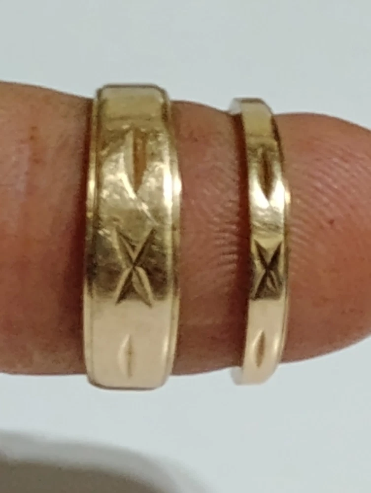 **5.49 grams total gold weight** Shipped via Priority Mail** Up for bids is a very nice pair of 14K Rings. Size 5.5. Beautiful Wedding or Engagement set with Nice Designs. The Buy it Now Price reflects the jewelry's craftsmanship value. Gold acid test confirms 14K. Good luck on the bidding & God bless.