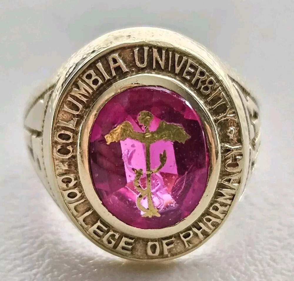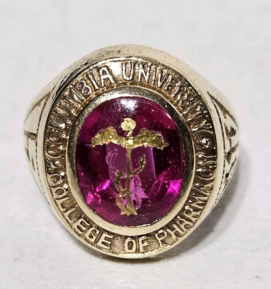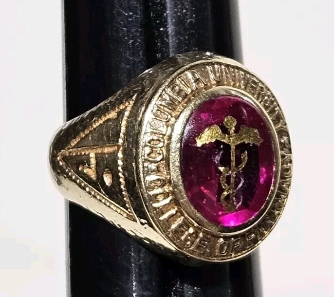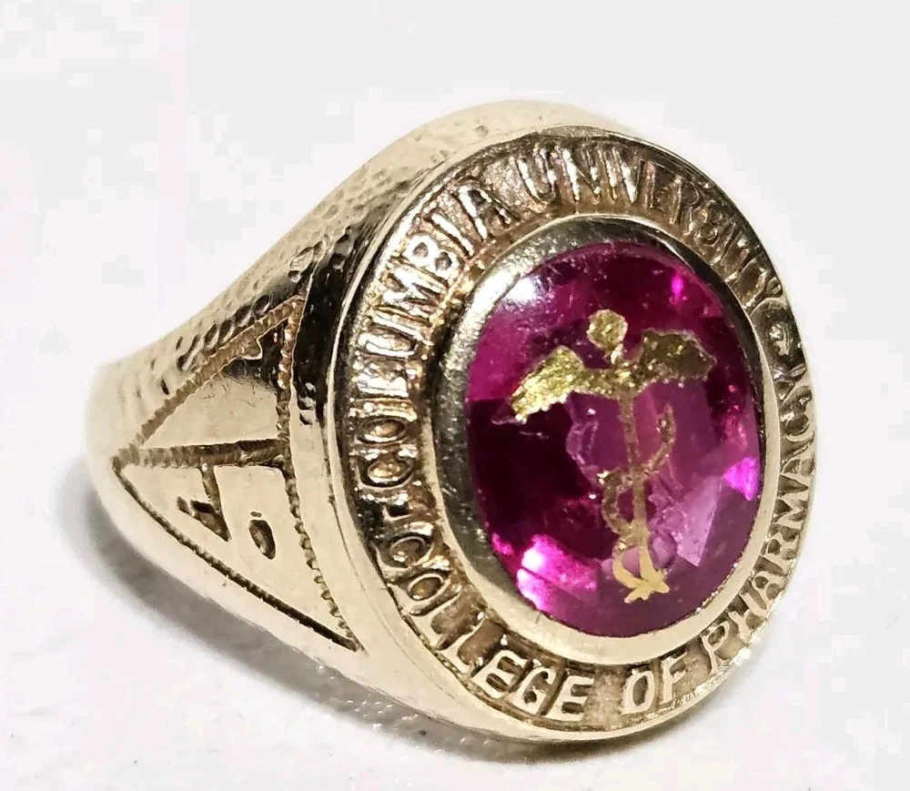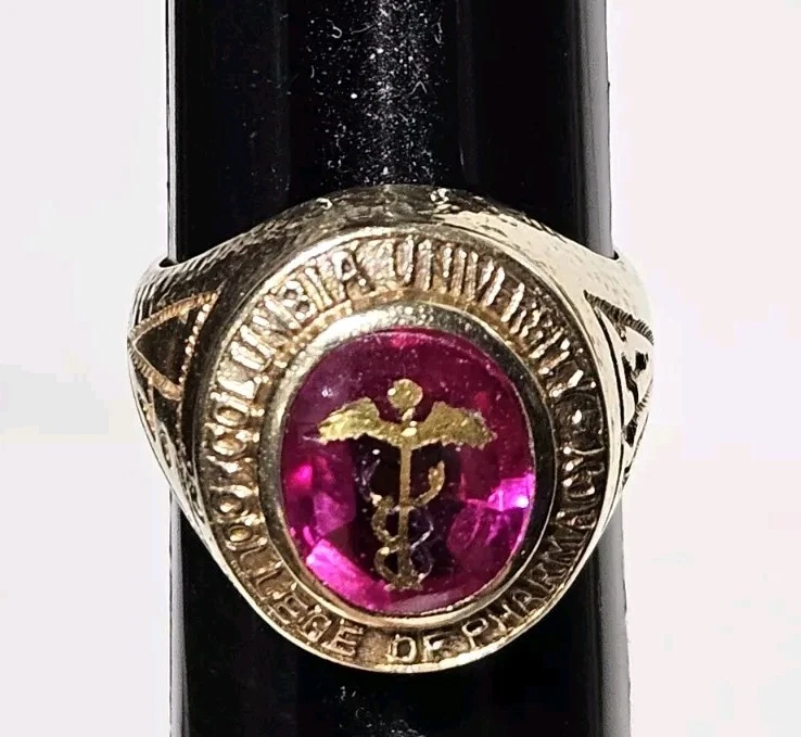 14K Gold 1933 Columbia University College Of Pharmacy 3 Carat Ruby Class Ring