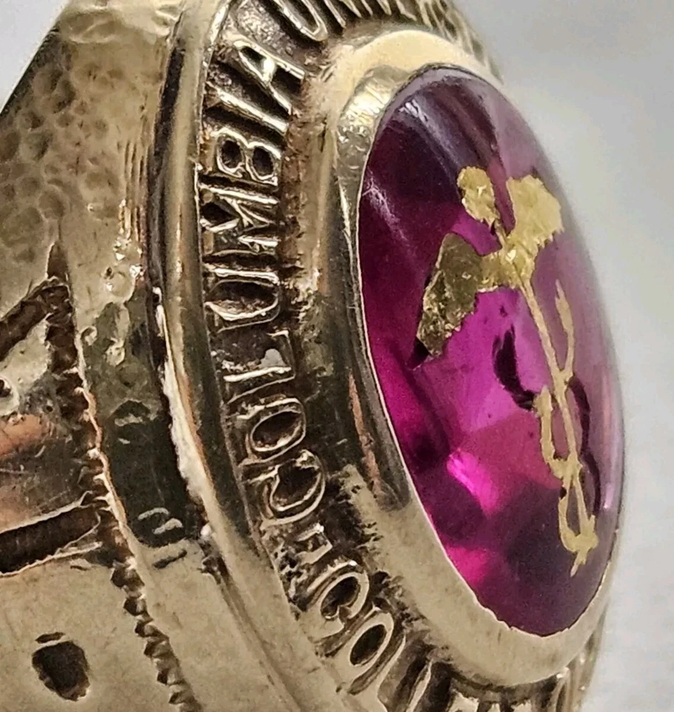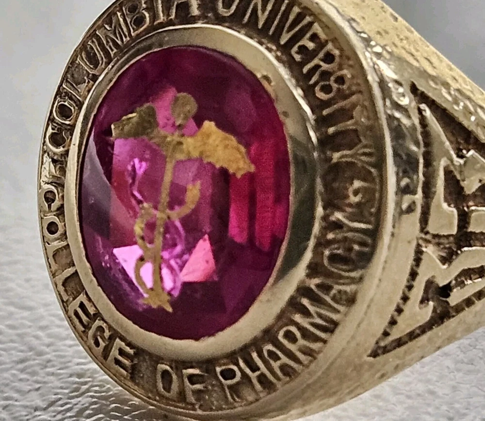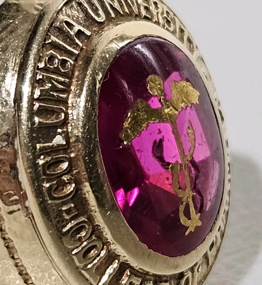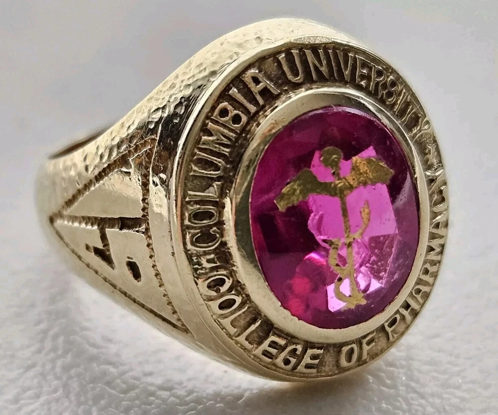 14K Gold 1933 Columbia University College Of Pharmacy 3 Carat Ruby Class Ring