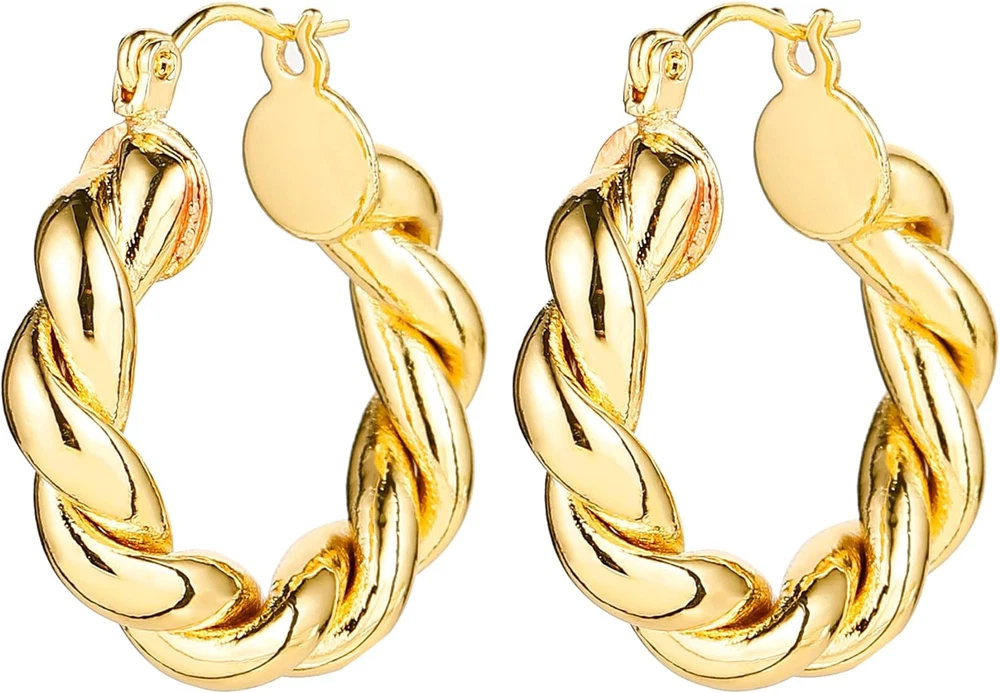 Product Description Gold Hoop Earrings for Women 14K Gold Chunky Hoop Earrings 1) Chunky Hoops with 14K Gold Plated, and Extra E-coating Color Protecting Skill, which make the colors Keep Longer. 2) Ideal Gift for family, gift for wife, christmas gift for women, mother, lover and friend. Gold Hoop Earrings set for women 1) These chunky hoops are hollow, Lightweight & Pretty. 2) They are comfortable to wear and won't bring any burden for your ears. You can wear them all day without issue and add to any outfit to instantly update. Great Earrings for Hypersensitive Ears 1) Non-allergenic materials 2) Genius design that doesn't require those pesky little earring backs! it's built into the earring so you don't lose them! Huggie hoop earrings Huggie earrings are so minimal and elegant, wearing them make you keep up with the fashion. Silver Twisted Hoops Twisted Hoops are popular and matched with daily wear. Easy to open and close: The clasp of Chunky silver hoops is very flexible and easy to open and close. Silver Chunky Hoops Finish: Chunky Hoops Earrings with Shiny Thick Rhodium Plating Colors. Material: Silver hoops are made of copper, Hypoallergenic, lead-free and nickel free. How to open huggies Perfect Jewelry Gift for Everyday Use and Any Occasion All occasion: Perfect size hoops for any occasion and outfit, these chunky hoop earrings are a great gift for her.