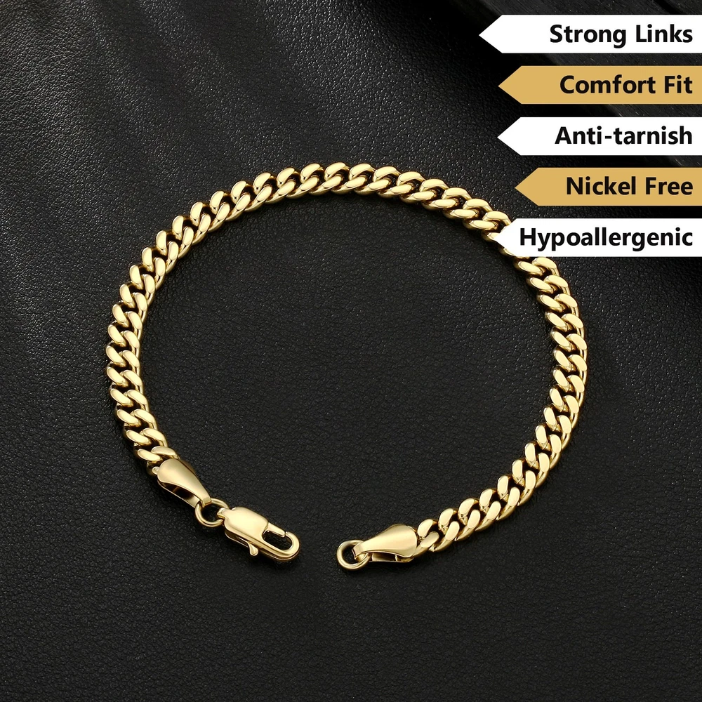 14K Gold Plated Cuban Bracelet 5mm-9mm Sizes (7 Inch-8 Inch)