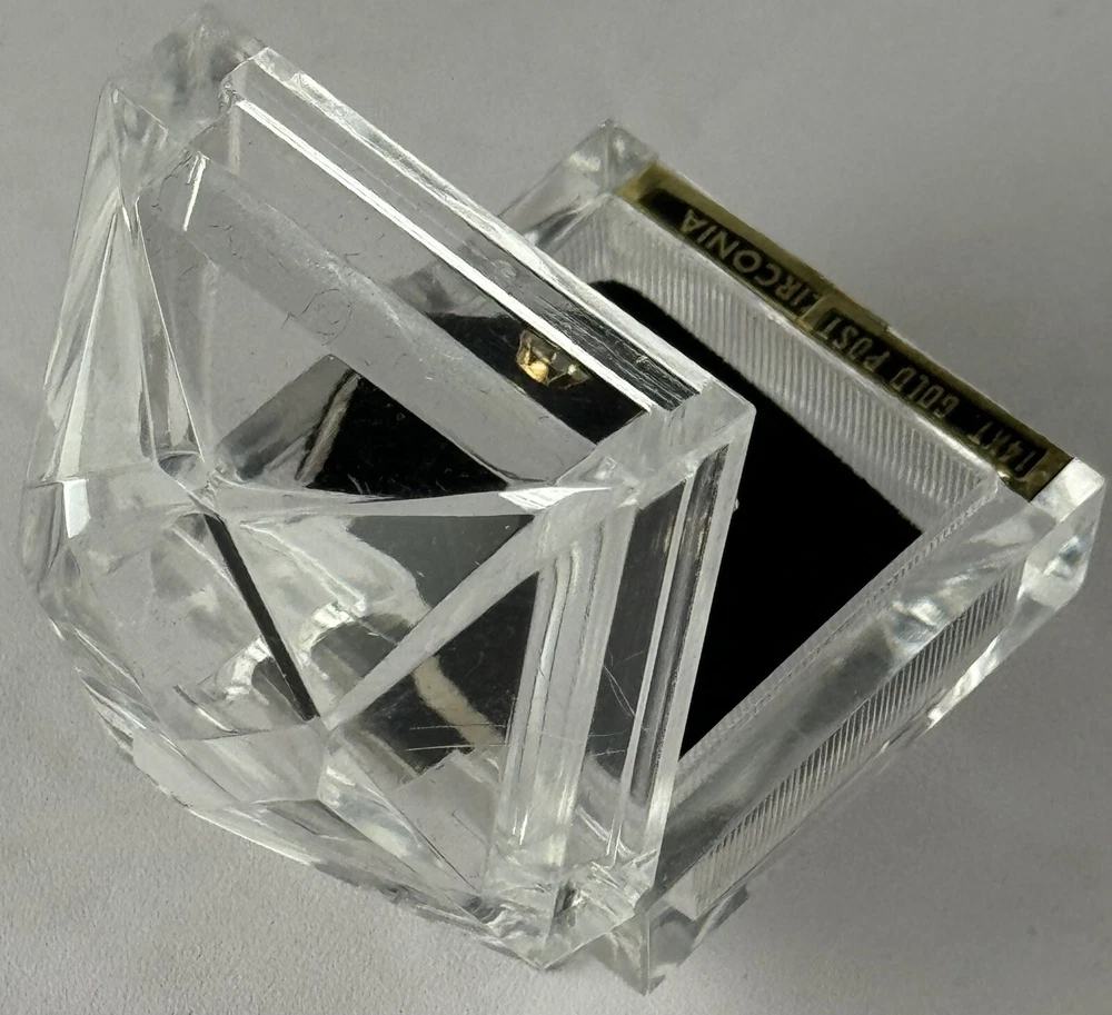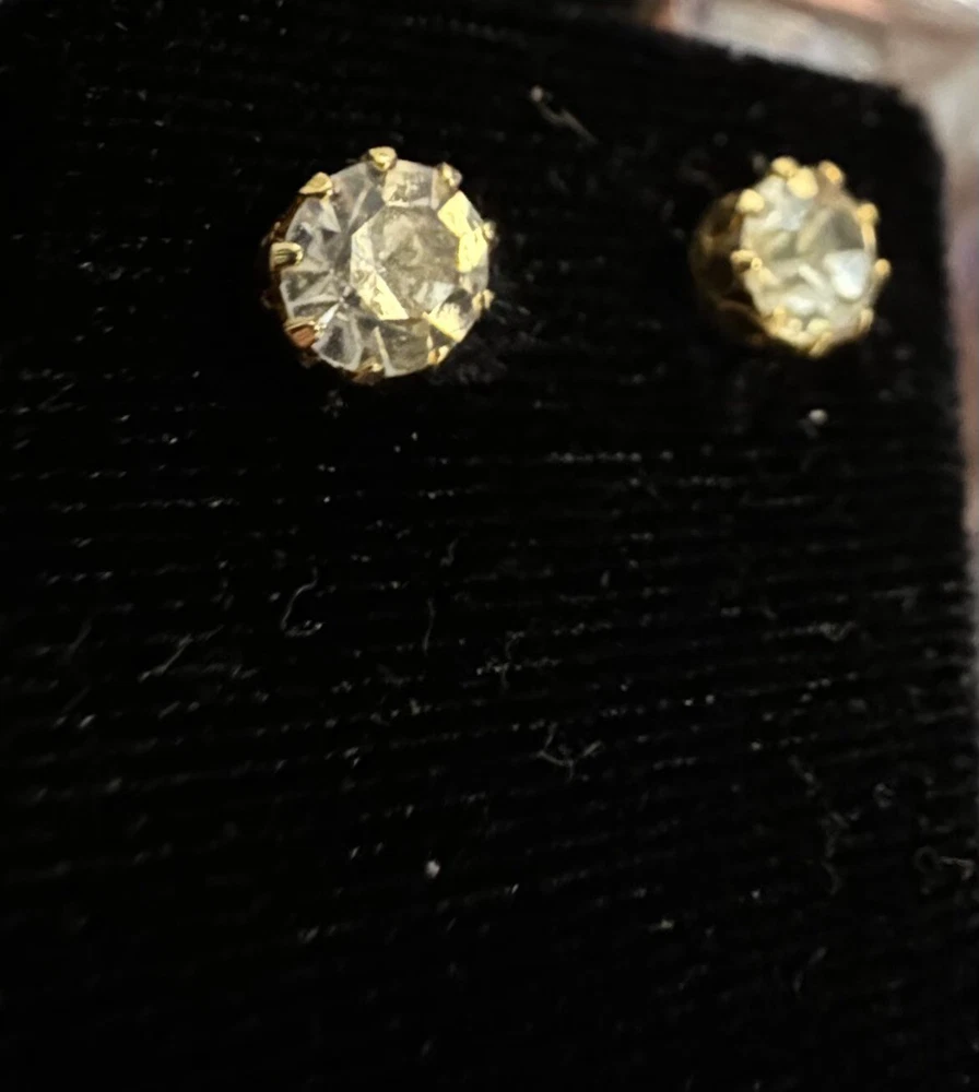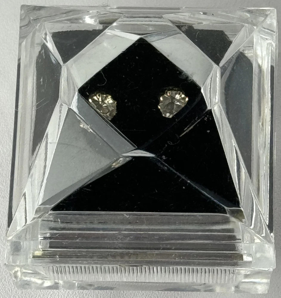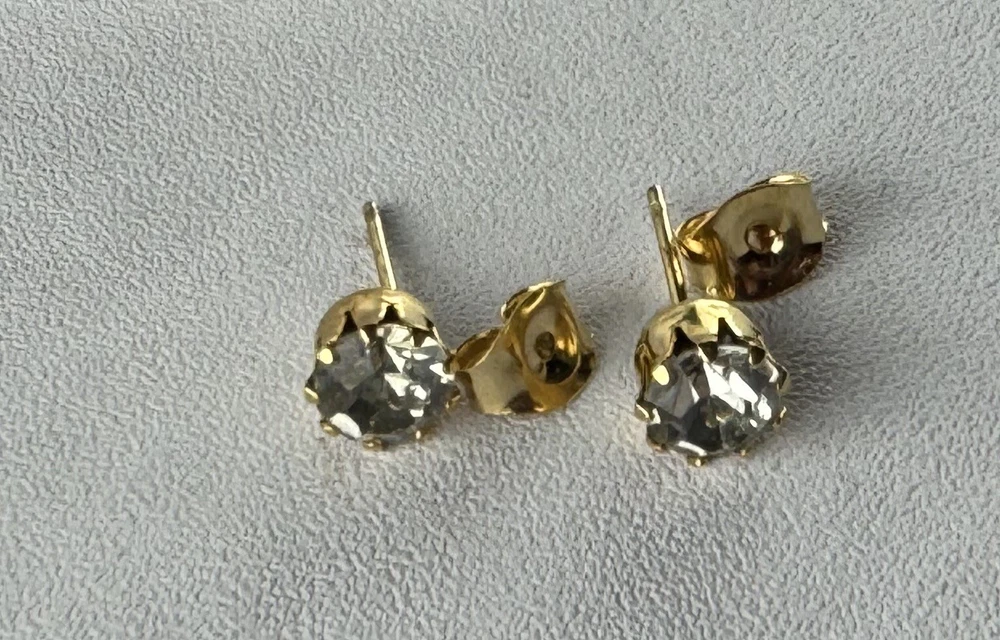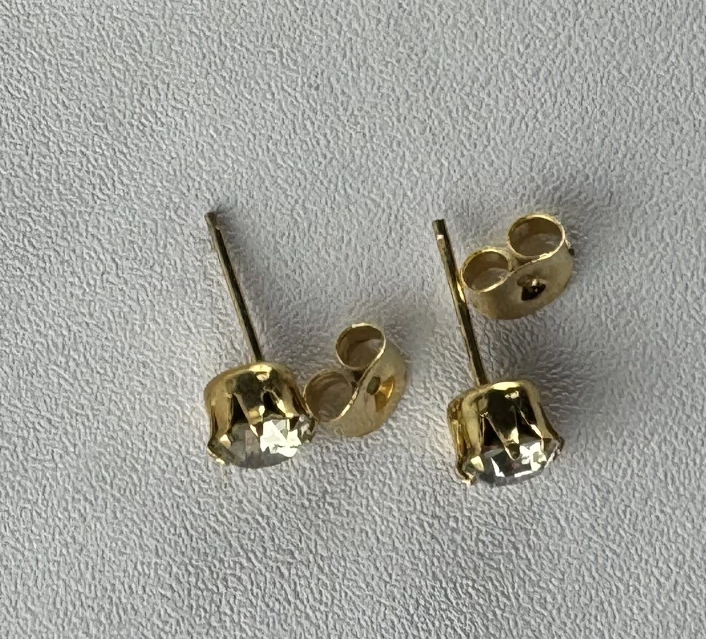 Approximately (not exact) 1/4” wide cubic zirconia stud earrings. 14k gold plated with jewelry box.