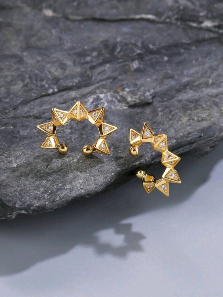 1. Love how this edgy gold ear cuff adds instant attitude to any look—lightweight but makes a bold statement. The chic irregular shape and sparkly cz stones catch the light beautifully, staying secure without piercing. Perfect day-to-night piece that elevates simple outfits effortlessly. A must-have for minimalist rebels who crave subtle drama!