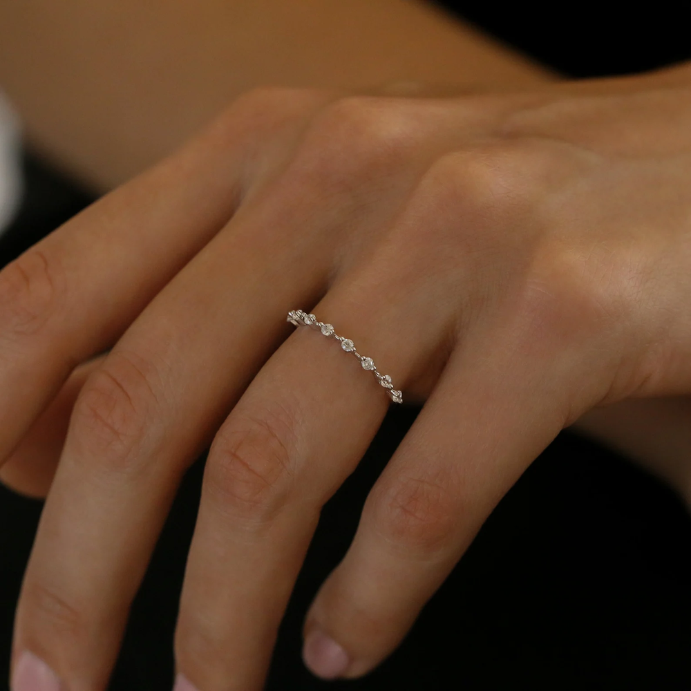 eBay Ecommerce Description Diamond Thin Half Eternity Ring, 14K Lab Grown Wedding Charming Band for Women Product Description ELEGANT & TIMELESS DIAMOND ETERNITY BAND: This diamond thin half eternity ring is a beautifully crafted symbol of love and commitment. Made with 8 lab-grown diamonds of f color and vs1 clarity, this delicate yet radiant ring sparkles with brilliance. Set in 14k solid gold, it is designed for both men and women, offering a sleek and modern look. The prong-set diamonds enhance the ring’s elegance, making it a perfect choice for weddings, anniversaries, or special occasions. With its stackable and minimalist design, this eternity band complements any jewelry collection and is ideal for everyday wear. HIGH-QUALITY CRAFTSMANSHIP & CUSTOMIZATION: Crafted from solid 14k gold, this thin diamond band offers durability, sophistication, and a timeless appeal. Each 1.1mm round-cut diamond is loupe-clean with excellent cut grade, ensuring maximum fire and brilliance. Whether worn alone or stacked with other rings, this nickel-free, hypoallergenic piece is perfect for sensitive skin. Additionally, we offer customization options choose a different diamond count, gemstones, or gold color to create a truly unique piece. If you need a quarter or half-size ring, we are happy to accommodate your request. PERFECT GIFT FOR ANY OCCASION: This 14k lab-grown diamond eternity band is a meaningful and thoughtful gift for anniversaries, birthdays, engagements, weddings, or valentine’s day. Packaged in a luxury gift box, it is ready to be presented to your loved one. Ethically sourced lab-created diamonds provide the same breathtaking beauty as natural diamonds while being a sustainable and responsible choice. Handcrafted in the united states, each ring comes with an authenticity certification card for quality assurance. Whether you're celebrating love, friendship, or personal milestones, this ring is a timeless treasure. Specifications Cut Grade: Excellent Total Carat Weight: 0.15 Ct Diamond Size: 1.1mm Each Ring Style: Thin Half Eternity Band Diamond Type: Lab-Grown Diamonds Diamond Color & Clarity: F Color, VS1 Clarity Setting Style: Prong-Set for Maximum Brilliance Number of Diamonds: 8 Round Brilliant-Cut Diamonds Sizable: All Sizes Available, Including Half & Quarter Sizes Metal: 14K Solid Gold (Available in Yellow, White & Rose Gold) Sku: Z1602