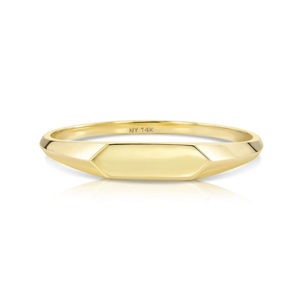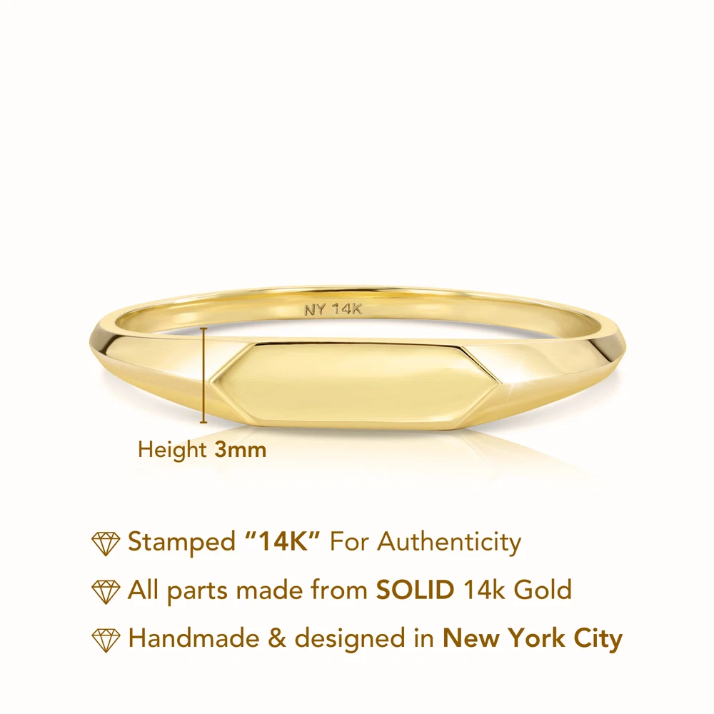 TILO Jewelry 14K Real Solid Yellow Gold Dainty Mini Slim Thin Signet Ring Love Friendship Minimalist Promise Band Pinky Ring Handmade Fine Jewelry Gift for Women, Girls, Unisex Our Dainty Thin Signet Ring is designed to be worn solo or stack with multiple different rings for a bigger statement. This stacking ring is designed to be genderless, suitable for her, him, them, or anyone. ✦ Crafted in 14k real solid gold stamped "14K" for authenticity. ✦ Ring sizes available in 5 US, 6 US, 7 US, 8 US, 9 US ✦ Handmade to shine and last a lifetime guaranteed. ✦ Free shipping on U.S. orders & All jewelry comes in a gift-ready box. WHY TILO JEWELRY • 30 Day No-Questions-Asked Money Back Guarantee! • Beautifully crafted and well-designed In Home Town NYC. • We are a trusted three generation family owned and operated business. • Our expertise offers wholesale prices for fine jewelry. SIZE GUIDE These are the sizes of U.S coins to compare with: • Dime = 18 mm (0.70 in) • Nickel = 20 mm (0.78 in) • Quarter = 25 mm (0.98 in) ABOUT US In the mid 90's our father and grandfather opened a jewelry manufacturing company in Manhattan, New York. At the time gold was only three hundred dollars an ounce! With great work and many years of dedication they were able to build a team of highly skilled professionals who produce fine handmade jewelry. Today we are a family business in the heart of New York City. Our mission is focused to give our customers the ability to purchase fine jewelry directly from the source! That means no middleman, and no extra fees. Jewelry made by us, coming straight to your door. Taking the business online was the best idea because we are able to pass these savings to you directly. With over twenty five years of experience we are very passionate and knowledgeable about jewelry and attention to detail. One purchase and you will instantly feel the level of quality and professionalism we bring. Thank you for your trust in TILO JEWELRY. We will continue to play a key role in the jewelry industry, and provide the best value for your hard earned money! TILO Jewelry from our family to your family | tilojewelry.com