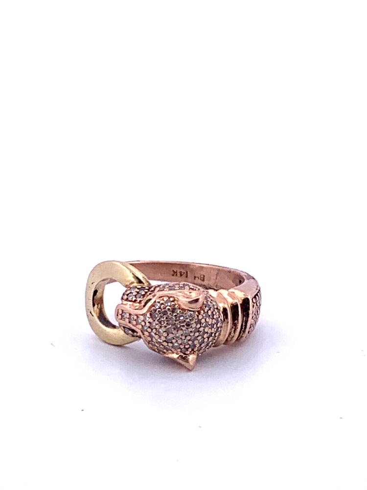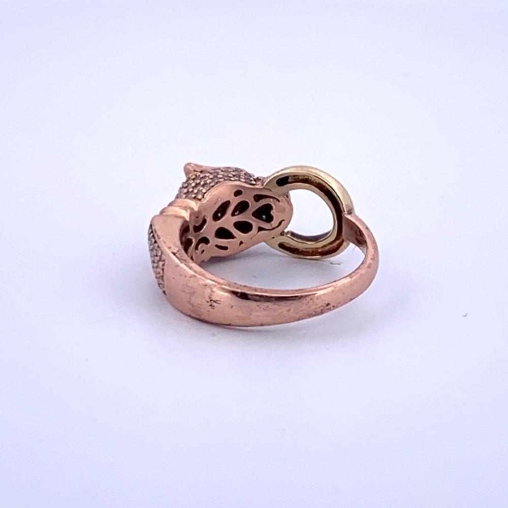14K Rose Gold Effy Panther Head Ring with 3/4 TCW Diamonds & Tsavorite Size 6.5