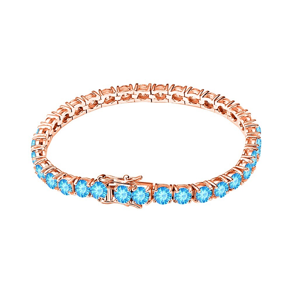 14K Rose Gold Plated Silver Pink Sapphire Tennis Bracelet 8 Inch for Women