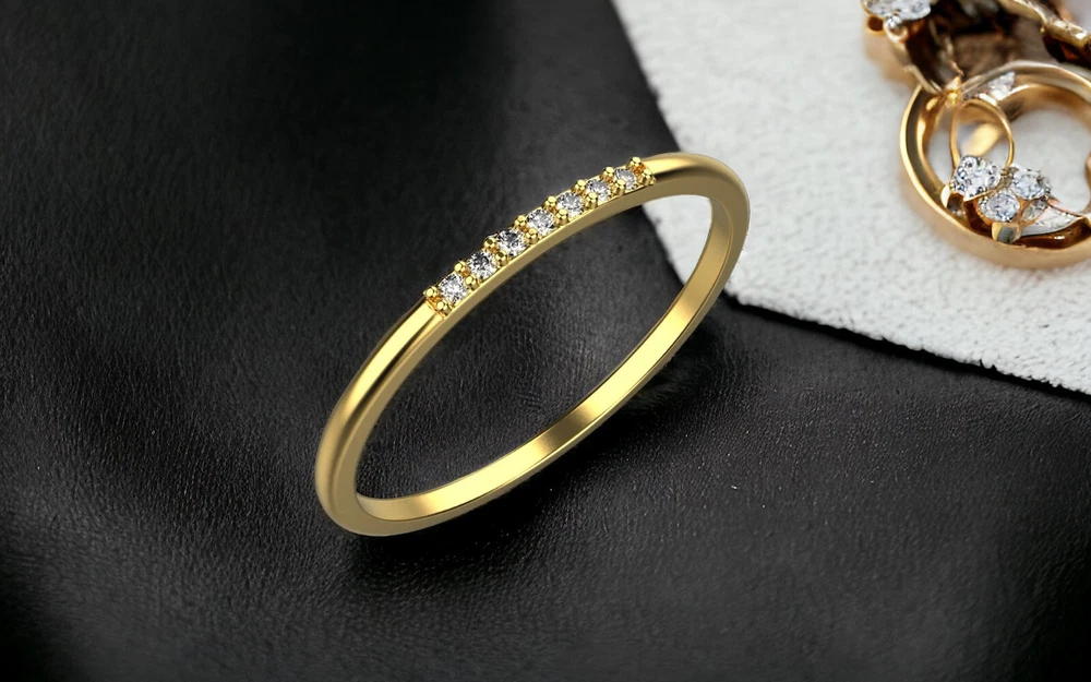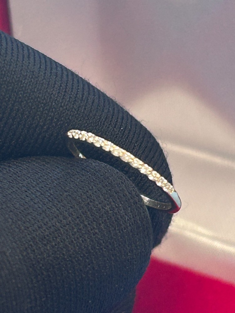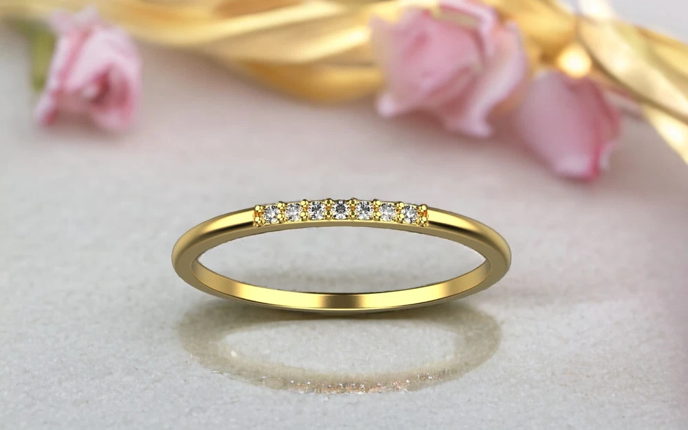 eBay Ecommerce Description 14K Solid Gold 13 Diamond Wedding Ring Half Eternity Stylish Wedding Band for Her Product Description TIMELESS AND ELEGANCE WEDDING RING: When it comes to symbolizing love and commitment, few things compare to the beauty and elegance of a diamond ring. Our 14k solid gold 13 diamond wedding ring is a stunning piece that serves as a stacking diamond wedding band, a diamond promise ring, or a thoughtful gift for her. With its delicate yet dazzling design, this ring is the perfect representation of timeless elegance and lasting devotion. EXQUISITE CRAFTSMANSHIP AND BEAUTIFUL DESIGN: Crafted from 14k solid gold, this thin diamond ring exudes sophistication and refinement. It features 13 round-cut, conflict-free diamonds, each measuring 1.0mm, carefully set along the band to create a delicate shimmer. With a sleek 1.1mm width, its slim and elegant design makes it ideal for stacking or wearing alone. Whether chosen as a wedding band, promise ring, or a special keepsake, this piece is designed to be cherished for a lifetime. A VERSATILE AND MEANINGFUL GIFT: The 14k solid gold 13 diamond wedding ring is a versatile piece that complements any jewelry collection. It can be paired with an engagement ring or other stacking bands to create a personalized look that tells your unique love story. Whether given as a symbol of commitment, a heartfelt promise, or a special surprise for a loved one, this exquisite diamond ring is a gift that will always be treasured. Specifications Color: Gold Ring Width: 1.1mm Ring Width: 1.1 mm Setting Style: Pavé Metal: Yellow Gold Material: Gemstone, Metal Total Carat Weight: .06 Carat Diamond Color & Clarity: G Color, VS2 Ring Size Options: 3 to 9 (Quarter Sizes are available) Gold Color Options: 14K White Gold, Yellow Gold & Rose Gold Number of Diamonds: 13 (Round Cut Conflict Free Diamonds, 1.0mm Each Diamond) We can also make the same ring with different quantity of Diamonds or with any gems upon your request. Please contact us if you have any customization request. 3 DIAMOND BAND https://www.ebay.com/itm/405010736006 5 DIAMOND BAND https://www.ebay.com/itm/405010743216 9 DIAMOND BAND https://www.ebay.com/itm/405010755295 We can also make the same ring with different quantity of Diamonds or with any gems upon your request. Please contact us if you have any customization request. SKU: 754