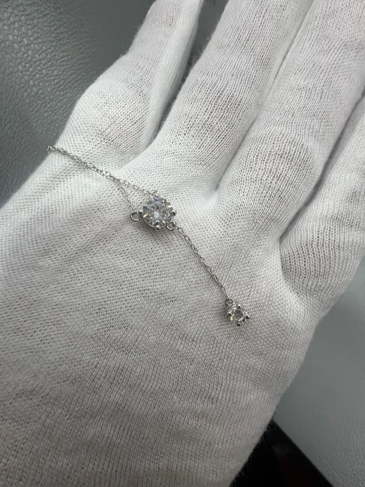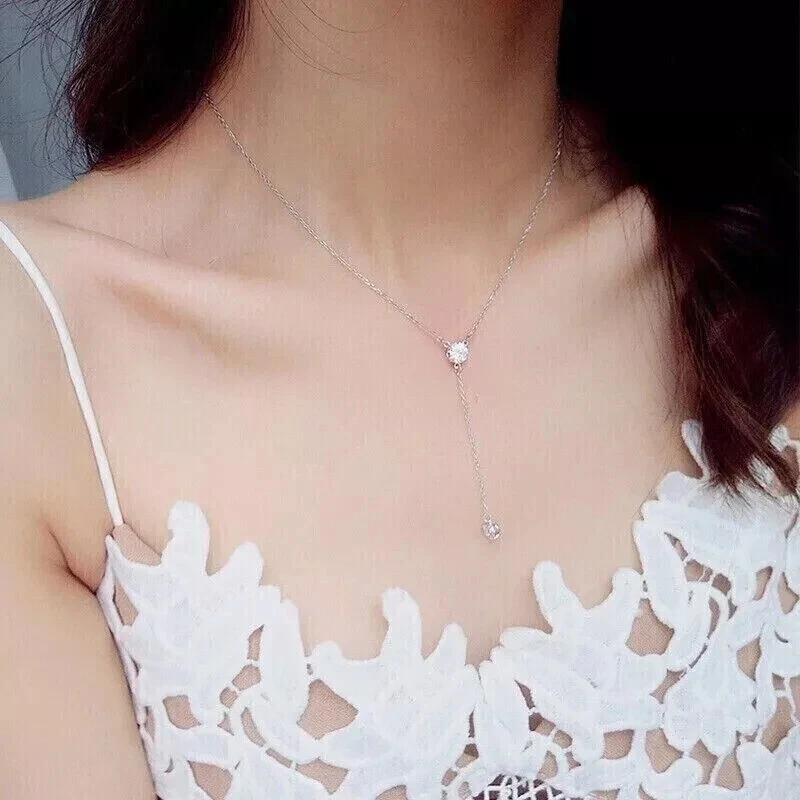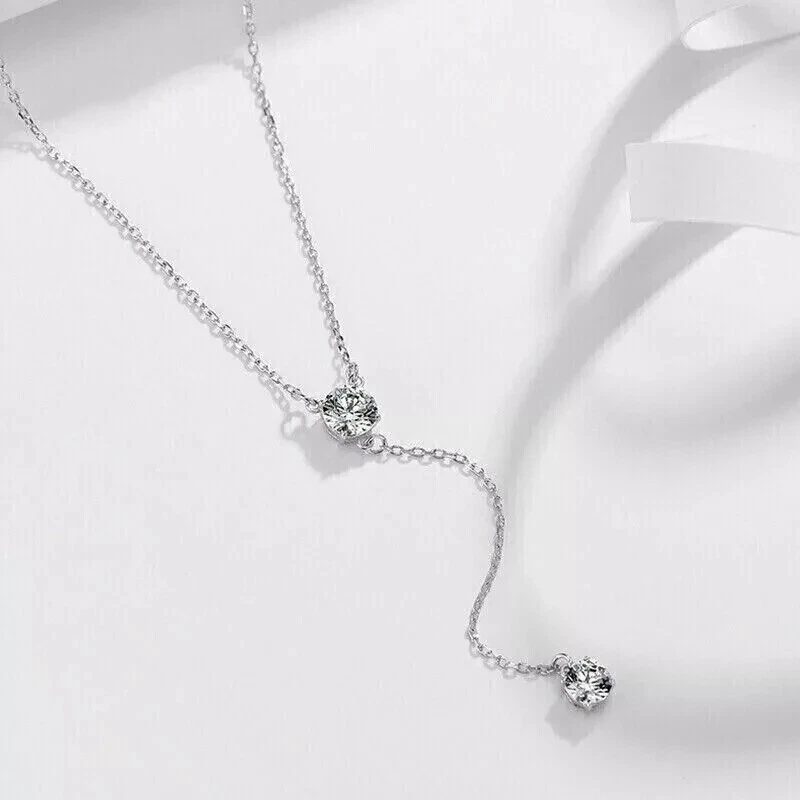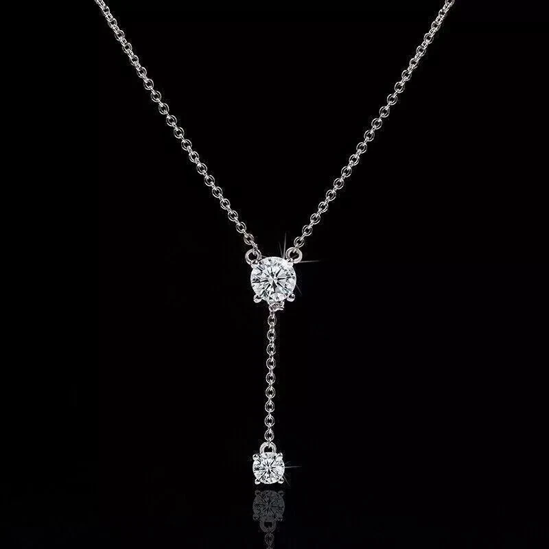 14K White Gold Plated 2Ct Natural Moissanite Women Y lariat Necklace Pendant 18"