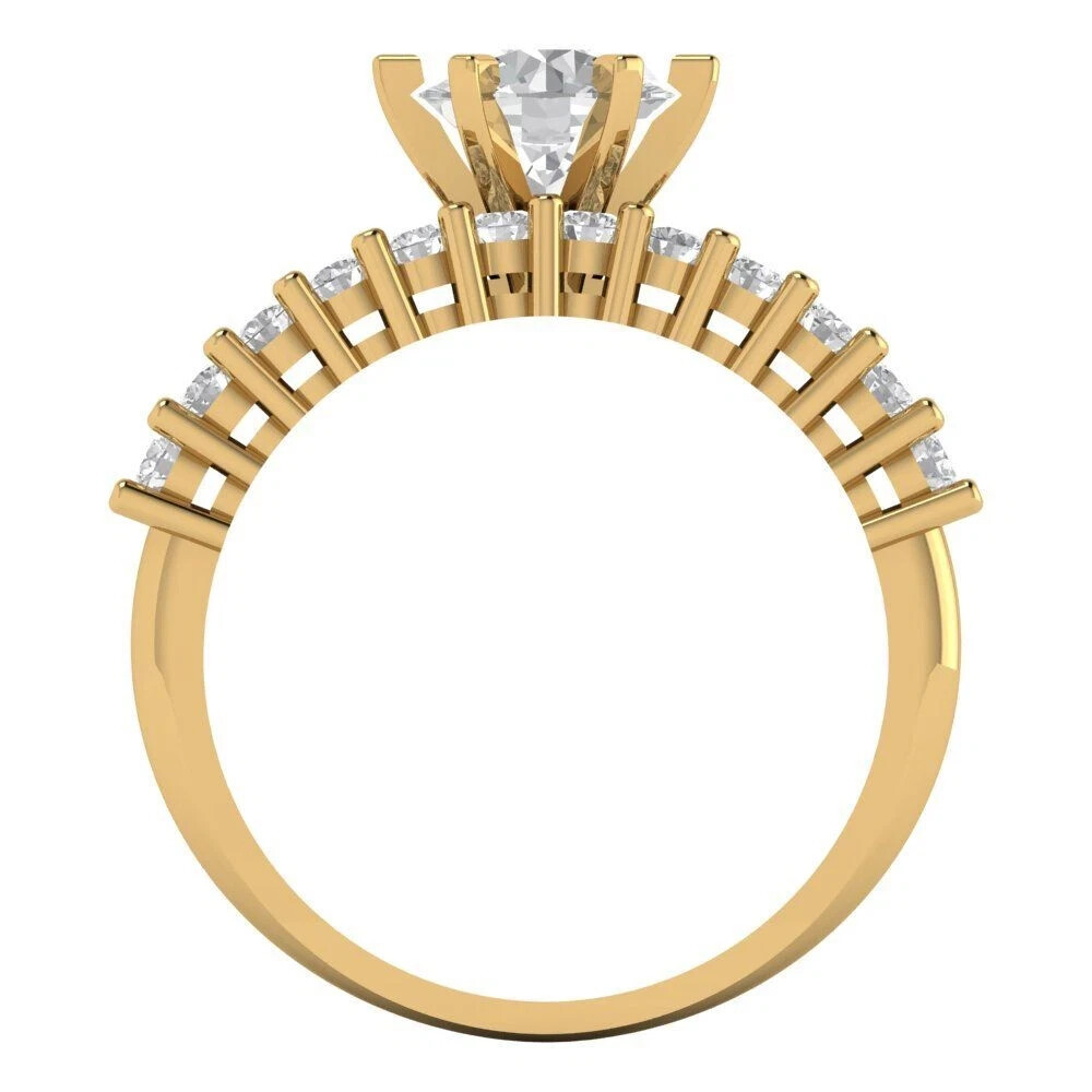14K Yellow Gold Plated 2CT Round Cut Natural Moissanite Engagement Ring for Her