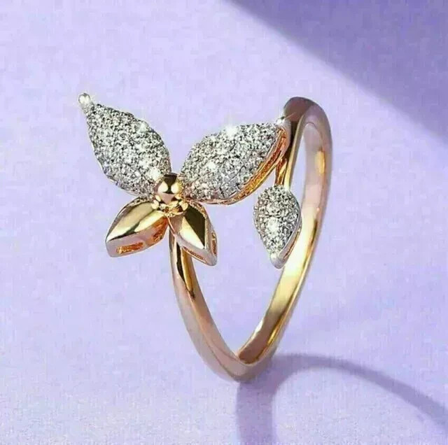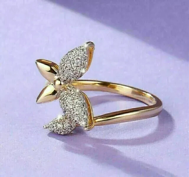 14K Yellow Gold Plated 2Ct Round Cut Lab Created Diamond Women's Butterfly Ring