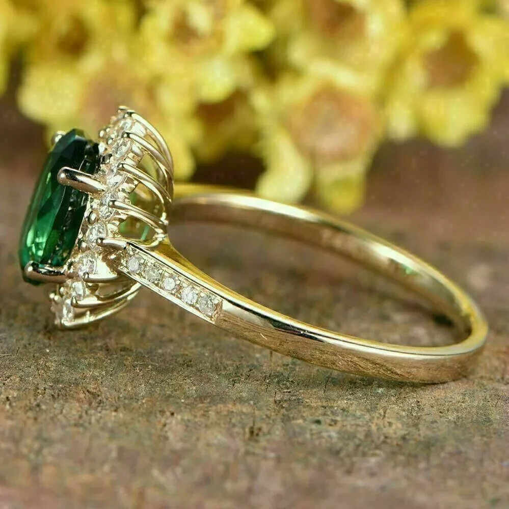Type: Ring Features: Engraved Diamond Color Grade: Loupe Clean Style: Ring Brand: classic_jewels01 Number of Diamonds: As Per Image Main Stone Creation: Lab Created Base Metal: Sterling Silver Secondary: N/A Metal Purity: 14k Personalization Instructions: We Can Customizes As Per The Requirements Diamond Clarity Grade: Very, Very Slightly Included (VVS1) Personalize: Yes Wholesale: Yes Main Stone Color: Green Occasion: Anniversary Handmade: Yes Certification: N/A Main Stone Shape: Oval Colored Diamond Intensity: Fancy Light Department: Women Pattern: Solid Size: All Ring Sizes Are Available. Please kindly Share Your Size Customized: Yes Country/Region of Manufacture: United States Item Width: As er Image Number of Gemstones: 1 Main Stone: Emerald Country of Origin: United States Total Carat Weight: 3.50Ct Setting Style: Prong Item Length: As Per Image Theme: Love Material: 14k Yellow Gold Plated Cut Grade: Excellent Gemstone Clarity Grade: Loupe Clean Color: Gold Shape: Round