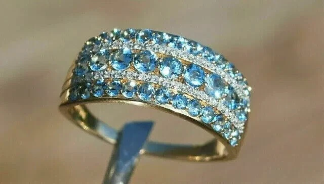 Seller Warranty: Yes Metal Purity: 925 Main Stone: Simulated Blue Topaz Setting Style: Prong Ring Size: All Size Available gtin13: Does Not Apply MPN: NA Gemstone Clarity Grade: Slightly Included Customized: Yes UPC: Does Not Apply Signed: No Sizable: Yes Shape: Round Main Stone Shape: Round Main Stone Creation: Simulated Handmade: Yes Country of Origin: Unknown Number of Gemstones: Multi Personalize: Yes Era: Undated Vintage: No Wholesale: Yes Type: Ring Secondary Stone: Simulated Diamond Brand: sp_jewels Color: Yellow Antique: No Personalization Instructions: As per your requirement we can change the over layer color Features: Engraved Style: Band, Eternity Metal: Sterling Silver Occasion: Anniversary, Birthday, Christmas, Engagement, Father's Day, Graduation, Mother's Day, Valentine's Day, Wedding Cut Grade: Excellent Material: Gemstone, Stone, metal Base Metal: Yellow Gold Plated Theme: Beauty Main Stone Color: Blue Country/Region of Manufacture: India