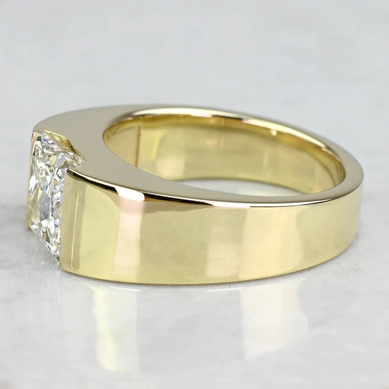 WELCOME TO HARRY GEMSTONES Elevate your style with this exquisite 14K Yellow Gold Plated Princess Cut D/VVS1 Moissanite Half Bezel Set Men's Ring. Crafted to perfection, this ring features a stunning white princess cut moissanite stone, measuring 8mm in length and width, showcasing excellent cut grade and VVS1 clarity grade. The half bezel setting style adds a touch of sophistication and elegance to this band, making it an ideal choice for engagement and wedding occasions. This band is made of high-quality 925 sterling silver, and it is completely plated with yellow gold, providing a luxurious look and feel. The ring size is 7, and it is customizable as per your preferences. The band is also available in a rectangle shape, adding more variety to your jewelry collection. Get this IGLA certified ring for a fair price, and enjoy the timeless beauty it brings to your everyday look.