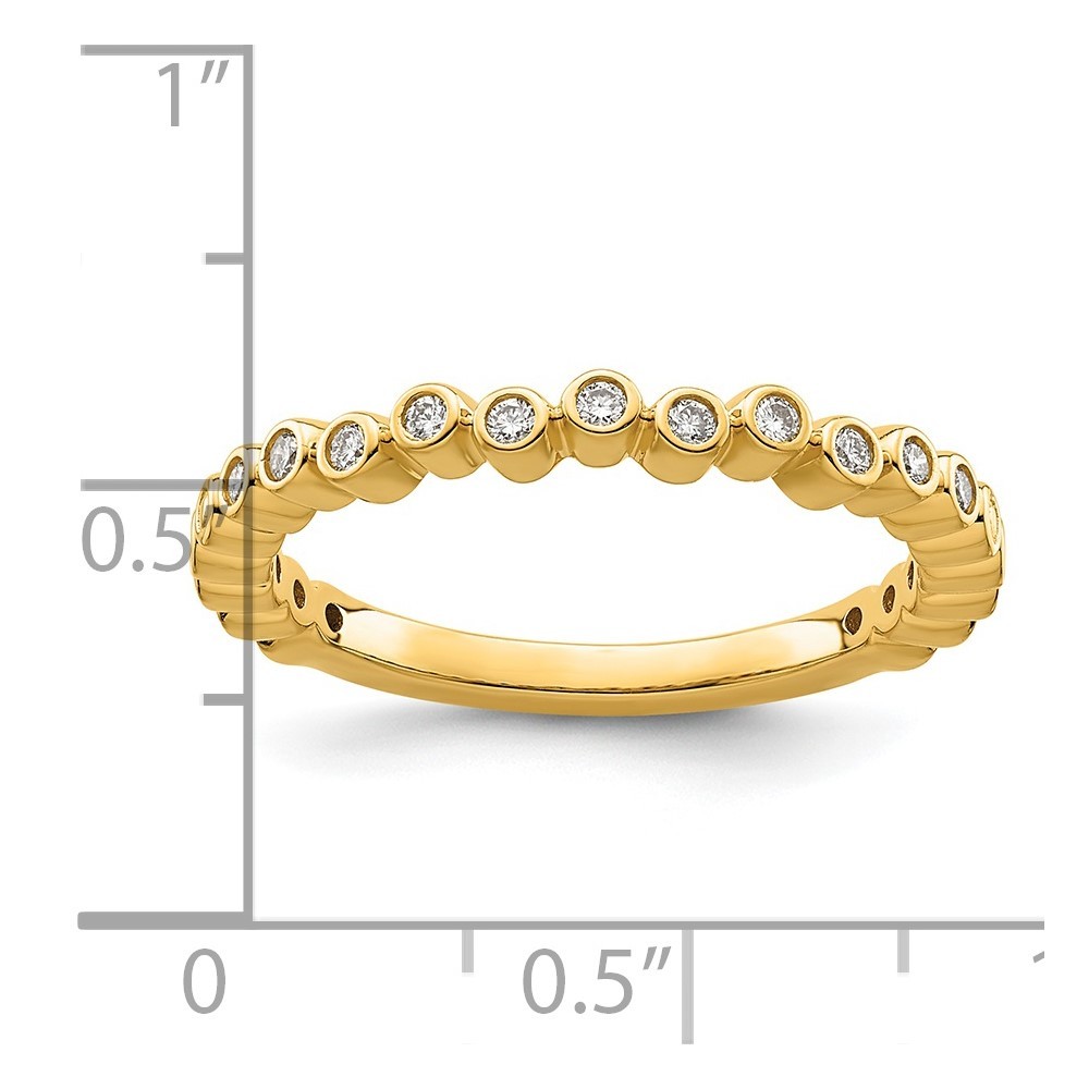 Material: Primary - Purity:14K|Finish:Polished|Stone Type_1:Diamond|Stone Quantity_1:11|Band Width:2.6 mm|Stone Setting_1:Bezel Set|Feature:Solid|Material: Primary:Gold|Sizeable:No|Stone Shape_1:Round|Stone Size_1:1.3 mm|Item Weight U/M:gm|Product Type:Jewelry|Jewelry Type:Rings|Sold By Unit:Each|Material: Primary - Color:Yellow|Ring Type:Stackable|Feature 2:Closed Back|Stone Creation Method_1:Natural All weights and measurements are approximate and may vary slightly from the listed information. Welcome to diamond_6720 Payments We accept all Ebay approved payment. Please sent the payment to us within 8 days after the auction has ended, or you will have unpaid case auto open by eBay. Shipping Policy We will ship all items within 1 business days of purchase during the work week (M-F) excluding holidays. If you order on Friday, your order will be shipped the following business day. Tracking will be provided when it becomes available. We will only ship to a PayPal Verified Address. Please make sure your address is current and correct. If the information does not match, your order may be canceled. Buyers are responsible for all customs, duties and taxes for your respective countries. Delivery times for International Shipping will vary. California Buyers Pay 9.0% Tax on all orders. case auto open by eBay. Return Policy & Exchange Returns or Exchange are accepted. Buyer must contact us within 30 days after the item is received. Item must be returned in unworn and resalable condition. We will only issue a refund for the purchase price, excluding any shipping fees. If we are at fault, we will provide a full refund. Buyer is responsible for all return shipping costs. BUYERS FEEDBACK If you have any concerns regarding your purchase, please contact us via eBay Message, we assure you that a satisfactory resolution will be reached. Your feedback is very important to us Do remember to give us 5 star rating(*****) if you are satisfied with our product & service .