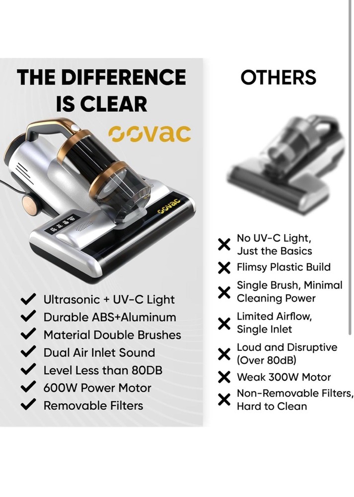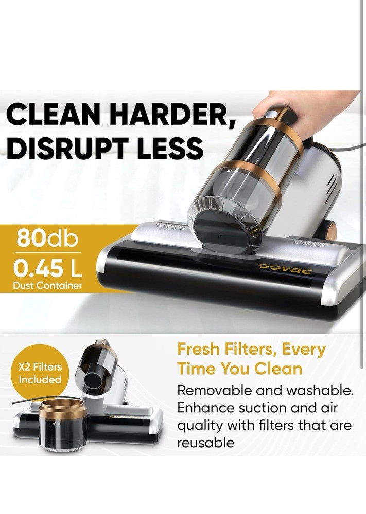 Mattress Vacuum BED CLEANER with UV-C LIGHT, 14kPa Suction, DUAL FILTERS & Dual Rollers, Furniture Handheld Vacuum Cleaner Dust Sensor, CORDED HANDHELD VACUUM for SOFA, Fabric & PET HAIR 【 POWERFUL CLEANING PERFORMANCE 】Effectively BED VACUUM lifts dust, debris, and pet hair from mattresses, sofas, and fabric surfaces using powerful suction. This MATTRESS VACUUM is engineered for deep cleaning—ideal as a VACUUM CLEANER for beds, PET HAIR, and upholstered furniture 【 UV-C & VIBRATION TECHNOLOGY 】Oovac BED VACUUM CLEANER features a built-in UV-C LIGHT that targets dust mites, bacteria, and allergens, helping to sanitize as it cleans. Vibration loosens embedded particles for deeper VACUUM CLEANER perfect for COUCH CLEANER tasks, fabric surfaces, and allergy-sensitive homes 【 COMPACT & CORDED HANDHELD VACUUM 】 CORDLESS HANDHELD VACUUM features a LIGHTWEIGHT VACUUM design for easy handling. Ideal as a COMPACT DUST VACUUM for furniture and fabrics, it's the perfect solution for quick cleanups. A HAND HELD VACUUM built for daily use on PET HAIR, BED and COUCH 【 DUAL FILTERS FOR CLEANER AIR 】 HANDHELD VACUUM features a dual filter system designed to trap fine particles, dust, and allergens. Ideal as a DUST VACUUM CLEANER for daily use, it helps improve air quality and maintain a healthier home. A compact HANDHELD VACUUM CORDLESS built for efficient DUST VACUUM performance 【 VERSATILE SOFA & PET HAIR CLEANER 】 Oovac SOFA CLEANER MACHINE doubles as a PET HAIR VACUUM and PORTABLE VACUUM for mattresses, bed sheets, and couches. Designed for convenience, this VACUUM CORDLESS is perfect for quick cleanups or deep cleaning with a reliable SOFA CLEANER MACHINE and PET HAIR VACUUM performance 【 WHY CHOOSE US? 】 Trusted worldwide, our MATTRESS VACUUM CLEANER offers powerful suction and versatility. Whether you need a MINI VACUUM CLEANER, a VACUUM FOR PET HAIR, or a reliable tool for DEEP CLEANING, this MATTRESS VACUUM CLEANER delivers top-tier performance every time