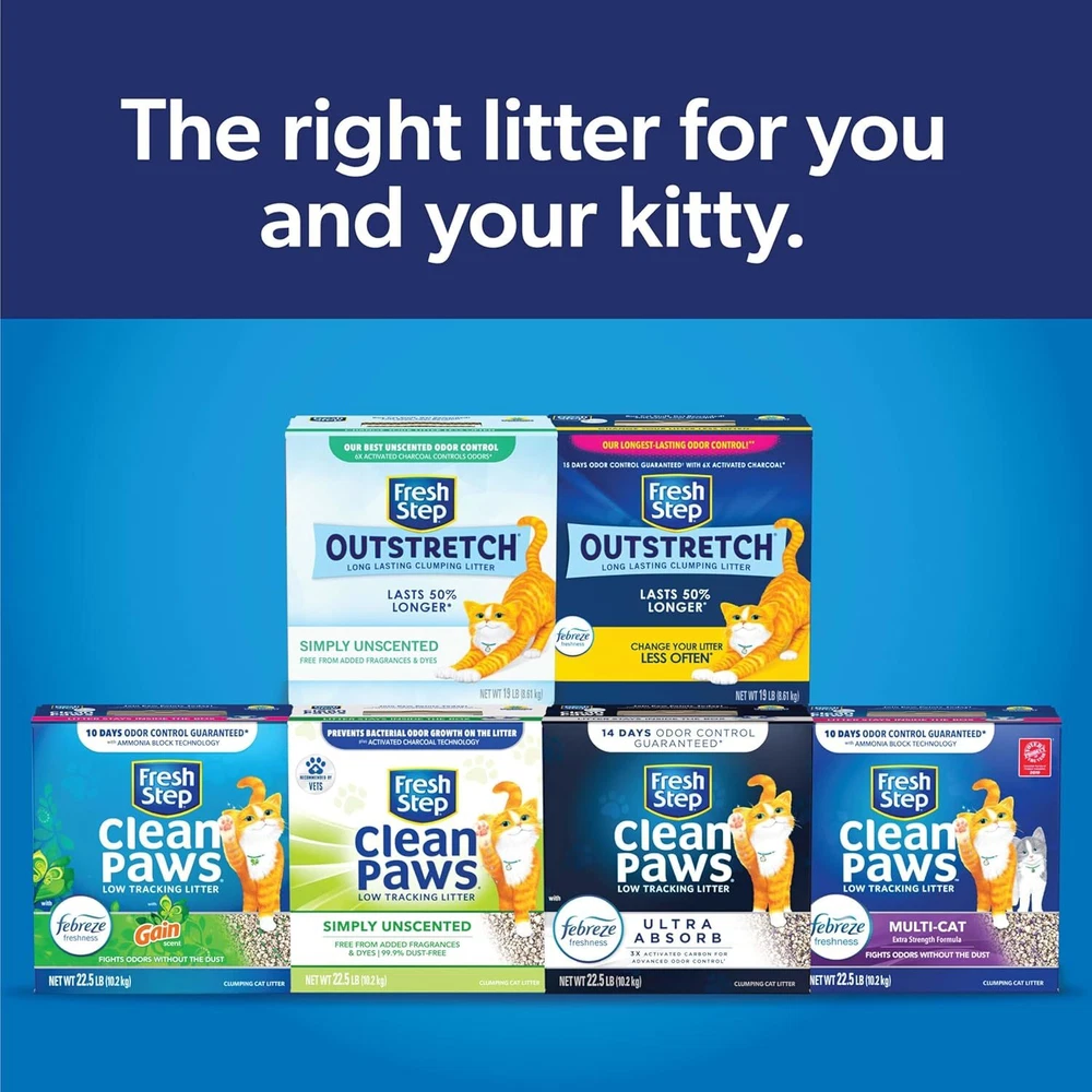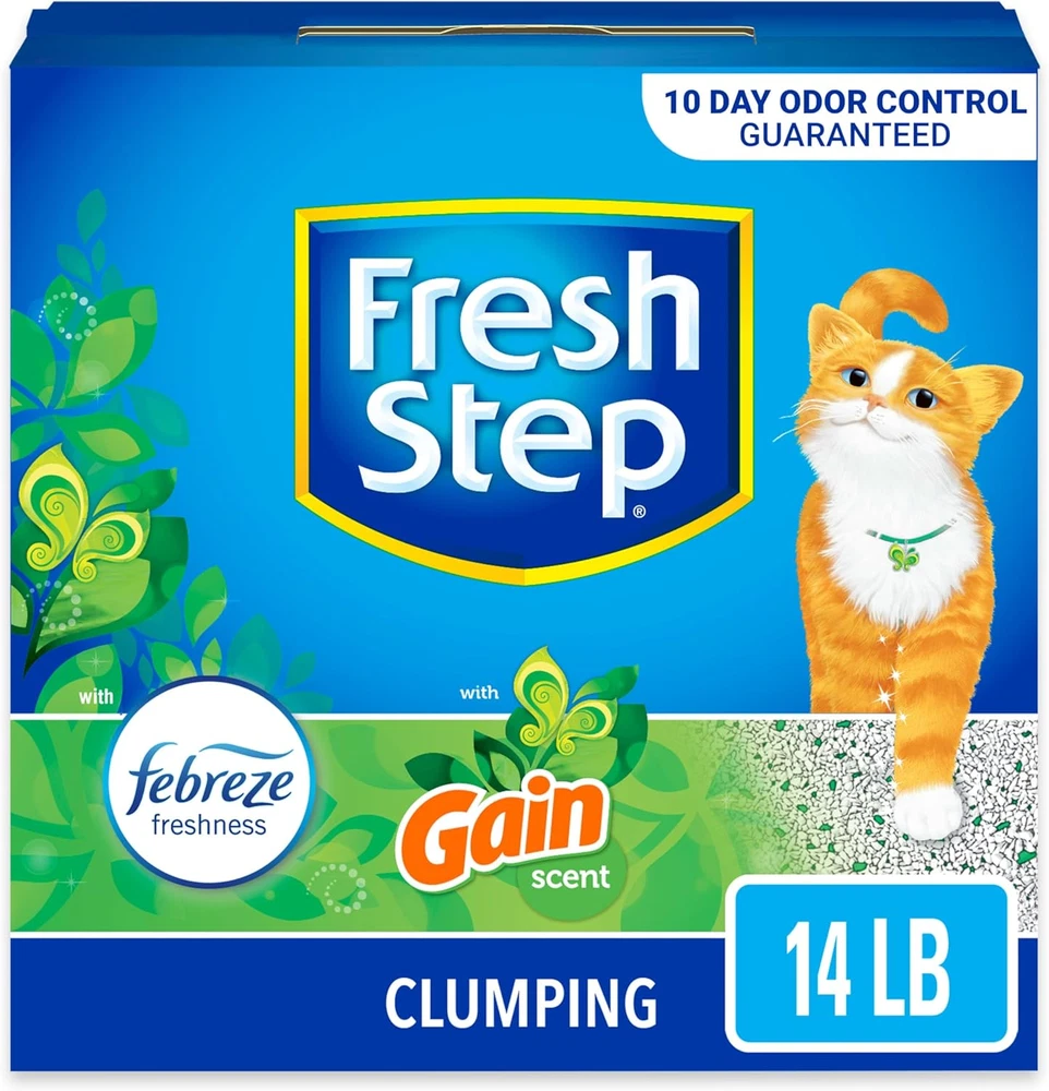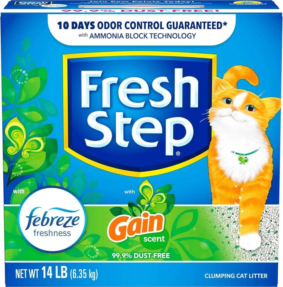 FOR YOUR PET 14LB Fresh Step Cat Litter with Febreze & Gain Scent - 10-Day Odor Control FEATURES Experience freshness and powerful odor control with Fresh Step Cat Litter infused with the beloved Gain Original scent! Designed with Febreze’s Ammonia Block Technology and activated charcoal, this 99.9% dust-free clumping formula locks in odors and keeps your home smelling clean for up to 10 days. The paw-activated Gain fragrance is released with each use, ensuring a fresh, pleasant scent around the clock. 10-Day Odor Control : Guaranteed odor control for up to 10 days, powered by Febreze and Gain. Advanced Clumping Formula : Absorbs liquids and locks in odors on contact for easy scooping. 99.9% Dust-Free : Cleaner surfaces, clearer air, and a happier cat. Paw-Activated Fragrance : Gain scent is released each time your cat uses the litter, keeping your home fresh. Keep your space fresh, clean, and odor-free with the trusted power of Fresh Step and Gain! Available in multiple sizes. Item model number 044600325590 Age Range Description Adult Number of Items 1 Country of Origin USA Target Audience Keyword house-cats Unit Count 14 Pound Brand Name Fresh Step Brand Fresh Step Material Clay Model Name Fresh Step-Gain Item Package Dimensions L x W x H 11.02 x 10.12 x 4.09 inches Manufacturer Fresh Step Item Weight 14.8 Pounds Specific Uses for Product Indoor Item Dimensions LxWxH 10.13 x 4.19 x 10.13 inches Color Gray & White Granules with Green Speckles Global Trade Identification Number 00044600325590 Target Species Cat Included Components 1; 14.0 lb cartons Scent Gain Scented Product Dimensions 10.13 x 4.19 x 10.13 inches; 14.8 Pounds Size 14 lb 4.19 inches x 10.13 inches x 10.13 inches. Weight: 14.8 lb PAYMENT We accept all payments via Ebay using Credit Cards , PAYPAL , Apple Pay and many others SHIPPING We are always working hard to ensure your package arrives as soon as possible. Please understand that some factors like weather, high postal traffic, and the performance of shipping companies are outside of our control. DELIVERY & RETURN POLICY We offer a 30-Day Return Policy on items in which you are not completely satisfied with. You have the option of a full-refund or an exchange of the item. No returns are available on items shipped outside of the USA. Questions? Message us