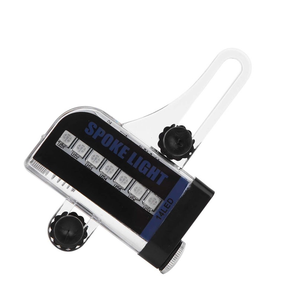 Feature: 1. Suitable for full-size steel wire models, including disc brake and V brake. 2. 14LED RGB light, good brightness, energy saving, long service time. 3. Switch by manual and dynamic mutual control. 4. Energy saving mode, a lamp can change 30 patterns, 4 seconds to change. Waterproof grade is IP6. 5. Wonderful accessory for mountain bike. Specification: Item type: Bike Spoke Light Condition: 100% brand new Material: plastic Weight: Approx. 49g Color: As picture shown Battery: 1 x AAA battery(not included) Waterproof grade: IP6 (immersion is not supported) Package List: 1 x Spoke Light Note: Not suitable for wide strip and sparse spoke bike.