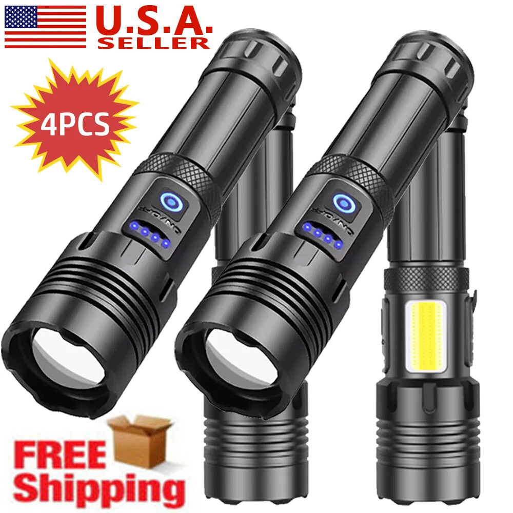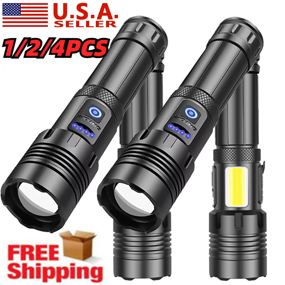1-4PC Super Bright 5000000LM 7Mode Dimmable Flashlight LED Rechargeable Tactical