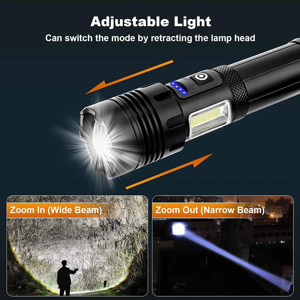 Electric Callus Remover Foot Sander Rough Feet Rechargeable Dead Skin Tools USA 11.98 USD 12.99 USD Free shipping 8% off Super Bright 990000LM Rechargeable LED Headlamp Head Light Torch Flashlight Lamp 12.98 USD Free shipping 19"Men Laptop Backpack Bag Anti-Theft Extra Large Travel School Waterproof Bag 25.59 USD Free shipping Hair Curling iron Short And Long Hair Ceramic Coating Two-Temperature Control 13.99 USD 0.99 USD Cordless Massage Belt Electric Heated with Back Support Waist Vibration Massager 29.59 USD Free shipping Concealed Carry Fanny Holster Tactical Military Pistol Waist Pouch Gun Bag 12.33 USD 12.98 USD Free shipping 5% off Rechargeable Spotlight,Spot Lights Hand Held Large Flashlight 1000,000 Lumens 27.98 USD 2.66 USD Solar Portable LED Flashlight USB Rechargeable Camping Tent Light Lantern Lamps 10.99 USD Free shipping Portable Plasma Pen Mole Removal Dark Spot Remover Skin Wart Tag Tattoo Beauty 16.5 USD Free shipping 36"in Tactical For Gun Bag Gun Padded Soft Case Carbine Hunting Black Backpack 24.29 USD 26.99 USD 0.99 USD 10% off 50PCS GOLF Shoe Spikes Replacement Studs Soft Fast Twist Cleat For Footjoy USA 10.99 USD 0.99 USD TWS Audifonos inalambricos 5.3 Bluetooth Auriculares For iPhone Samsung Android 9.99 USD Free shipping Solar Power 300W LED Torch USB Rechargeable Light Outdoor Camping Tent Lamp Bulb 12.99 USD Free shipping Tactical Helmet Cover for Fast MH PJ BJ Helmet For Airsoft Paintball Helmet Cove 4.99 USD Free shipping Bicycle Motorcycle Mount Invisible Selfie Stick For Gopro Insta360 X3 X4 Max 20.99 USD Free shipping 1000 Lumens Premium Rechargeable LED Flashlight Stainless Steel Pen Light 6.99 USD Free shipping SAFE & SECURE SHOPPING SATISFACTION GUARANTEED FAST SHIPPING Store Categories Store Categories Other Auto & motorcycle parts Headlamp & Flashlight Camping & Hiking Hunting Equipment Cycling Equipment 3C Tools Promotion Hot Sales!!! Cars & Motorcycle Accessories Electronic Product Car Light You may also like 1-4PC Super Bright 5000000LM 7Mode Dimmable Flashlight LED Rechargeable Tactical Product Description NOTE: 1. Double-click on the switch to open the side light. 2. Remove the transparent plastic film from the battery before charging it. Feature: High Brightness & Long Distance Lighting: This white LED spotlight for long distance lighting is far different from ordinary torches, because it's much brighter than them with luminance of u p to 5000000LM Lume ns, and its lighting range can reach about 500 Meters, while others only have about 300 meters. 7 Gears: There are 7 work modes for you to switch freely, meeting your different requirements of lighting. COB Side Light: Double light source from different directions make the outdoor environment brighter and safer. More importantly, the COB side light can work as a red warning light. Specification: Type: LED Flashlight Material: aluminum alloy Battery Life (Bright light): 4-8 hours Charging Method: Type-C Size: 17.2*4.6*3.5cm Gears: 7 gears (strong light, medium light, flash light, cob strong light, cob weak light, cob red light, cob red flash light, double click the button to turn on cob light) Fixed Focus: telescopic ZOOM Conversion Method: button Package Include: 1 / 2 / 4 x LED Flashlight 1 / 2 / 4 x Type-C Cable 1 / 2 / 4 x Built-in Battery Payment Shipping Returns Contact Us Payment 1. This is the payment method we can accept: Paypal 2. You can checkout and pay immediately after the auction ends or you complete the purchases. If you need an eBay invoice sent to you by Email, please contact us before making payments. 3. Once the checkout is completed, you will not be able to include any additional purchases. We start to process and fulfill your order once payment is received. New purchases after the checkout will be processed separately. 4. Payments are expected within 4 days after the order is confirmed. Unpaid item (UPI) strike may be filed with eBay upon non-receipt of payment. Shipping 1. How much is the shipping & handling (S&H)? Our shipping and handling charges are clearly stated in the Shipping and Payments section of the item page, and we provide Free Shipping for most items. 2. For multiple purchases, the combine shipping discount will be automatically calculated when you check out and pay all of your purchases together. Items checked out separately may not be combined and the combine shipping discount will not be offered automatically. 3. Please make sure the correct Ship-To address is entered before checking out. Once the payment is completed, you may not be able to change the shipping address. We shall not be held responsible for any wrong or undeliverable addresses. 4. We usually ship within 1-2 business days of receiving cleared payment. Returns 1. We put buyer's satisfaction at top priority. If you're not pleased with your purchases, we'll be happy to make an exchange or refund the item total price less Shipping and Handling (S&H) charges within 30 days of your purchases. 2. For any Exchange, Refund or Return, the item must be in its original condition, including the box, packaging, and all the accessories or gifts. 3. We'll provide prepaid return shipping label if the return is a result of our error. Postage reimbursement is offered only on standard mails, and it needs to be approved by our staff prior to returning. 4. Please allow up to 7 business days for returns to be processed. 5. Shipping and Handling (S&H) charges are not refundable. Contact Us 1. Customer satisfaction is very important to us and our feedback rating reflects this satisfaction. If you have any question or concern, please contact us via eBay message. 2. We respond to all eBay messages as quickly as possible. Though your question will usually be answered very soon, please allow us up to one business day before you start thinking your message is neglected or the reply is avoided, because there would be time difference, non-working hours or public holidays that have prevented us from making an instant respons