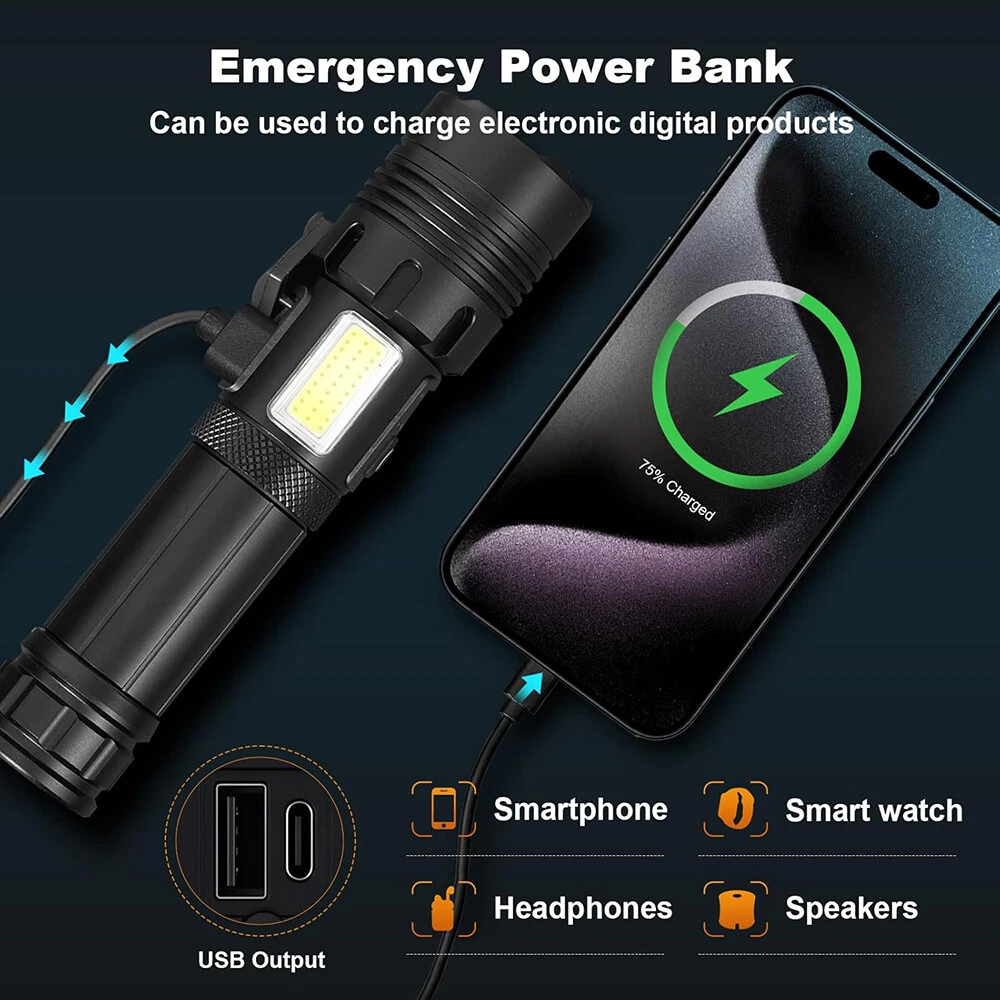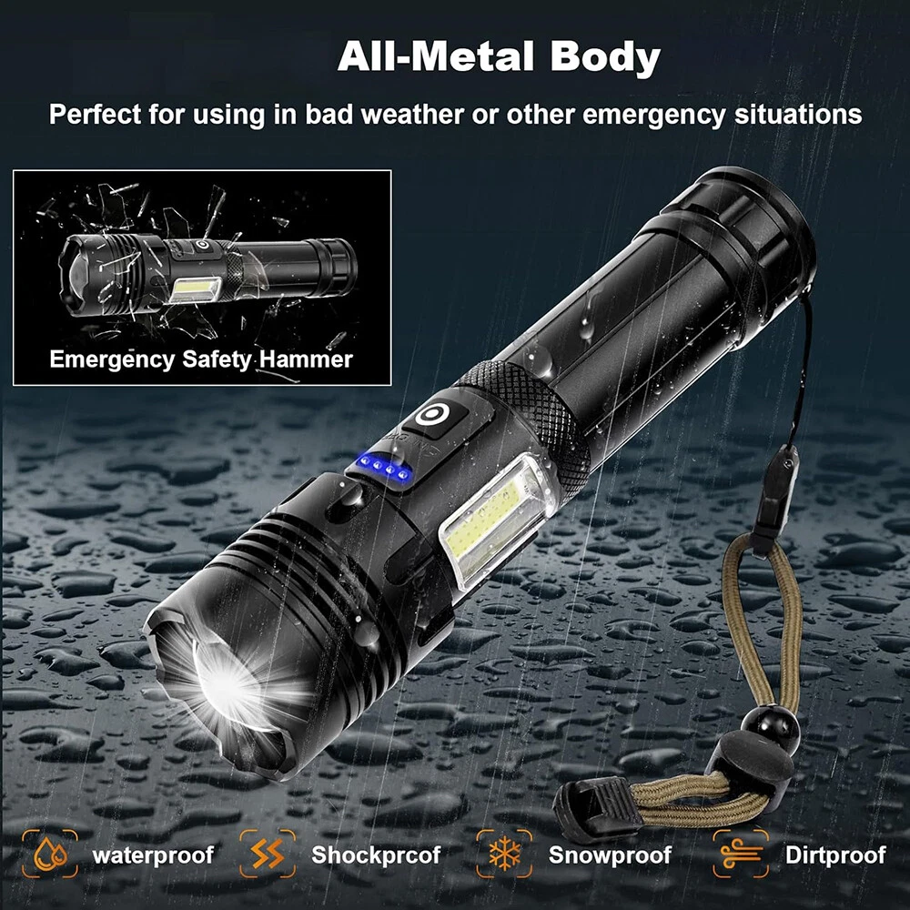 Brand: Unbranded Features: Batteries Included, Clip On, Handheld, Rechargeable, Waterproof Item Weight: 282g Material: aluminum alloy Lumens: 1000000 Item Height: 3.5cm Power Source: USB MPN: Does not apply Lighting Technology: LED Type: Flashlight Item Length: 17.2cm Size: 17.2*4.6*3.5cm Item Width: 4.6cm Waterproof Grade: IPX5 Color: Black