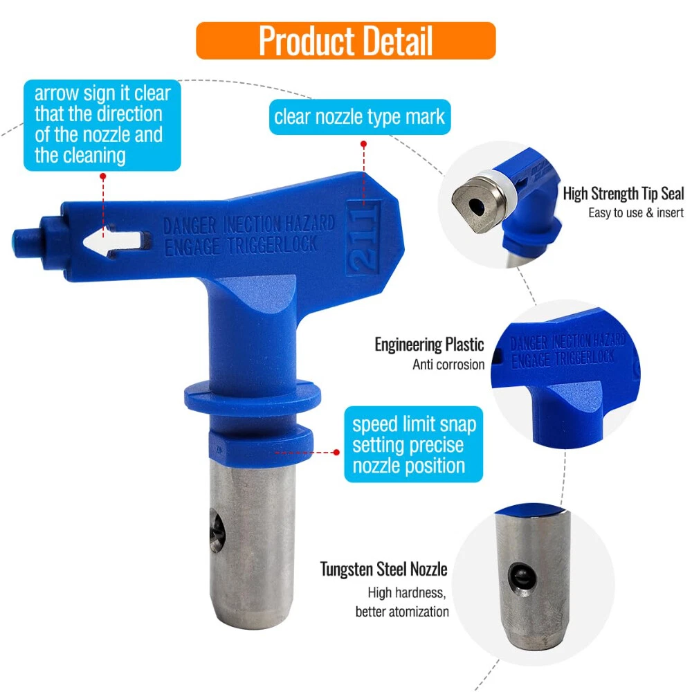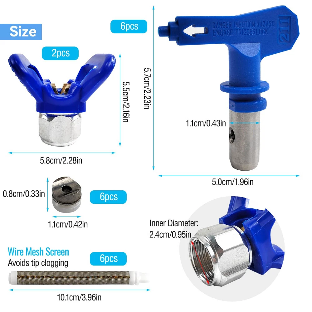 Product Description Welcome to our store! 14Pcs Reversible Spray Paint Nozzle Tips, Airless Paint Sprayer Guns, with Spray Gun Filters and Protective Seat, Spray Paint Machine Parts, for House, Car, Hull Painting (211, 315, 417, 515, 517, 623 Practical: Our reversible spray paint nozzle set can be sprayed stably, the coating is uniform and delicate, which can effectively reduce the loss. It is a must-have painting accessory for painters and decorators. Model: Our airless paint sprayer has 6 models: 211, 315, 417, 515, 517, 623. The spraying angle is 20° - 60°, the range of spray width of paint sprayer gun can be seen in the 5th picture. Material: Our airless paint spray gun tip set is made of high -hardness tungsten steel. It is strong and durable, not easy to wear, and has a long service life. High precision, spray stable. Easy to use and clean: Upgrade airless paint spray nozzle can be installed quickly in a short time without using tools. After use, you only need to rotate the nozzle to clean it, which is convenient and fast. Applicable scenario: We provide you with 6 spray paint nozzles, 2 protective seats, and 6 filters. It can be used for house renovation, hull painting, car painting and other scenarios to meet your daily painting needs. Installation steps (refer to the 7th picture) Step 1: Insert the nozzle seal into the protective base. Step 2: Insert the nozzle into the protective base and rotate it to secure it. Step 3: Attach the protective base to the air spray gun and it is ready for use. Note: After use, the nozzle can be rotated for cleaning. Payment Policy Shipping Policy Returns Policy
